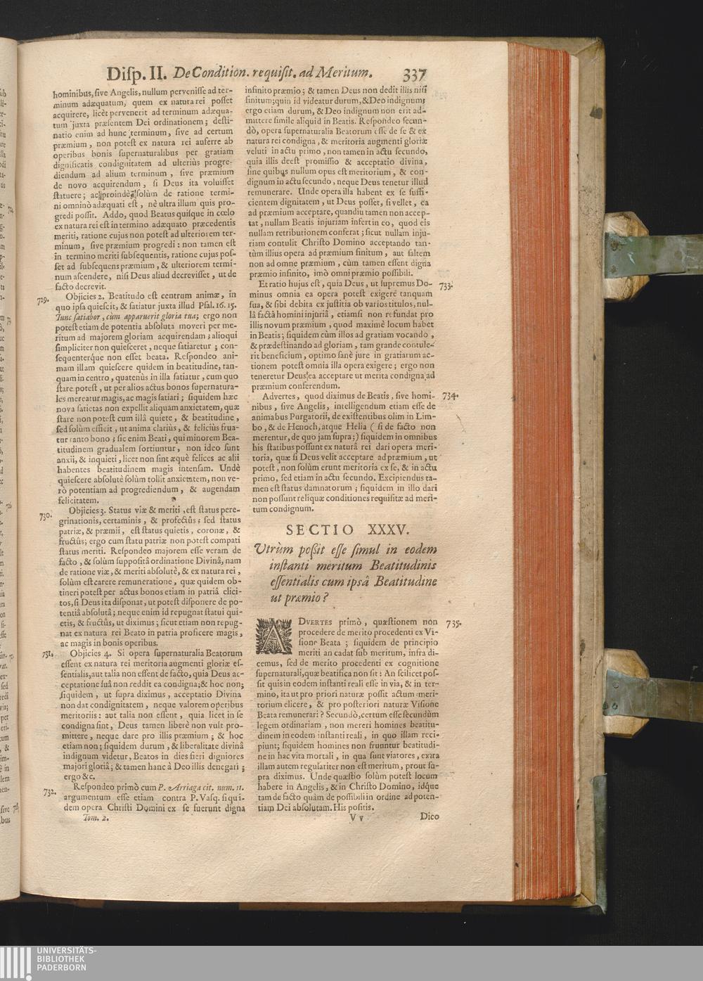 Sectio XXXV. Vtrùm poßit esse simul in eodem instanti meritum Beatitudinis essentialis[...]