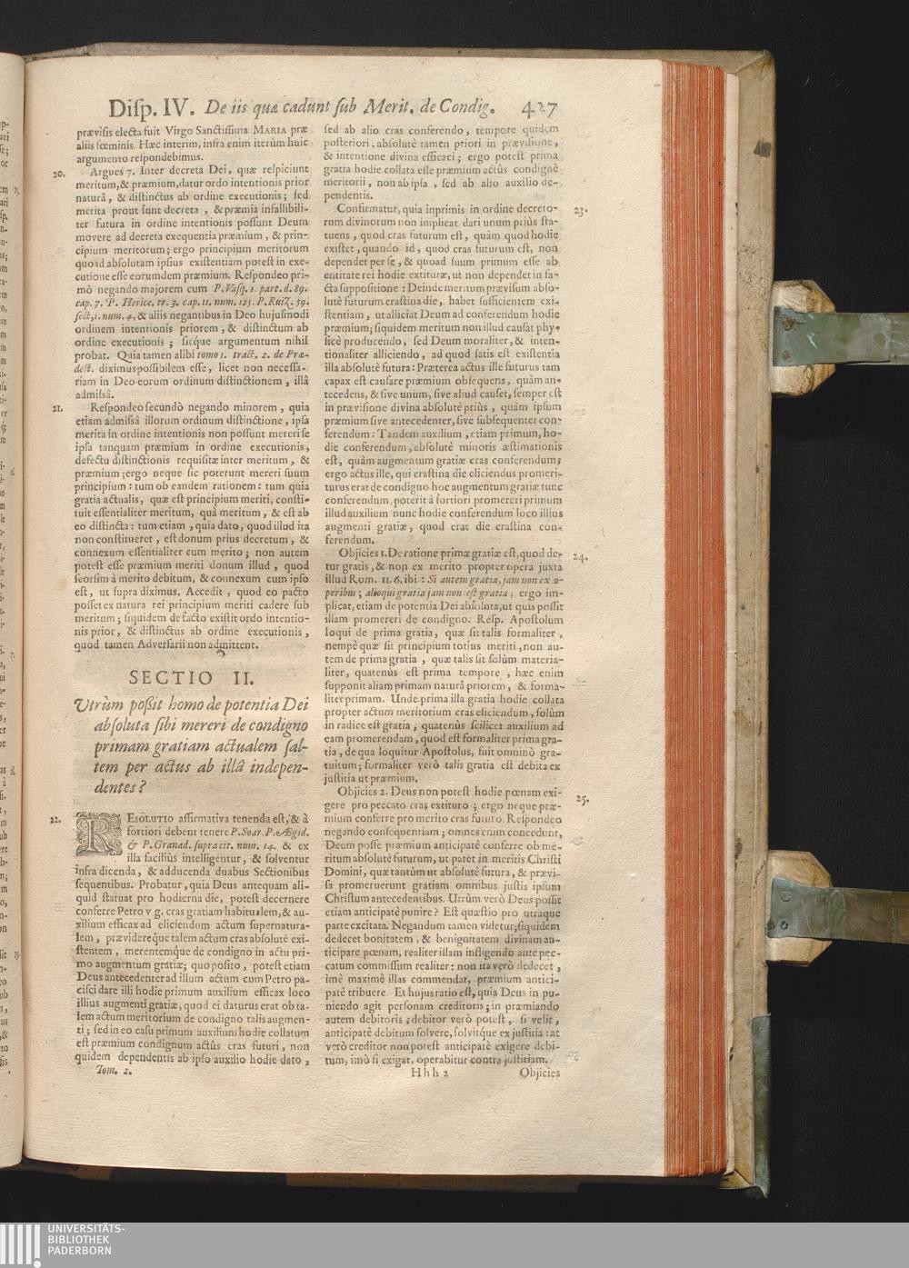 Sectio II. Vtrùm poßit homo de potentia Dei absoluta sibi mereri de condigno primam[...]