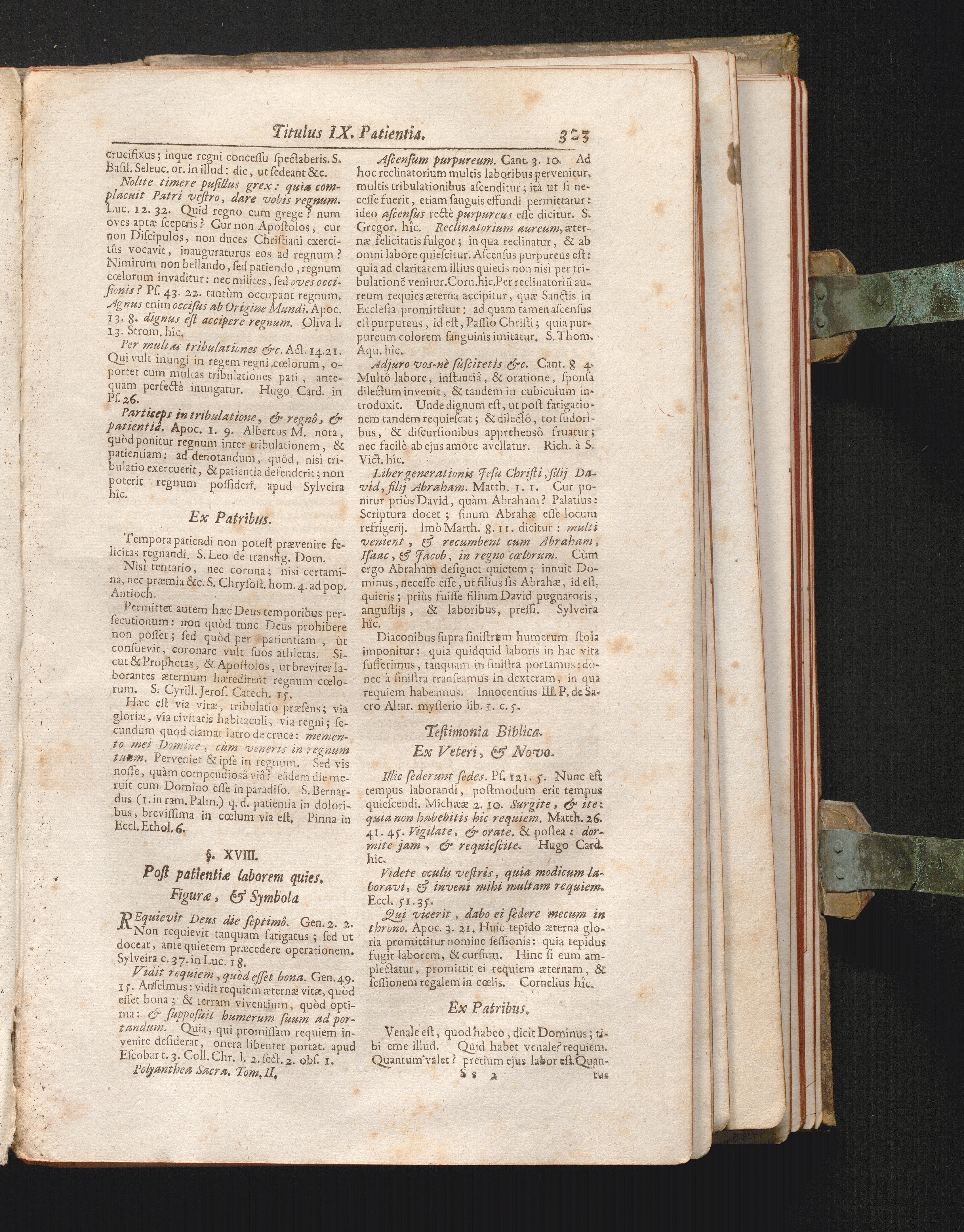 §. 18. Post Patientiæ laborem quies. Figuræ. Symbola. Testimonia Biblica. Ex Veteri,[...]
