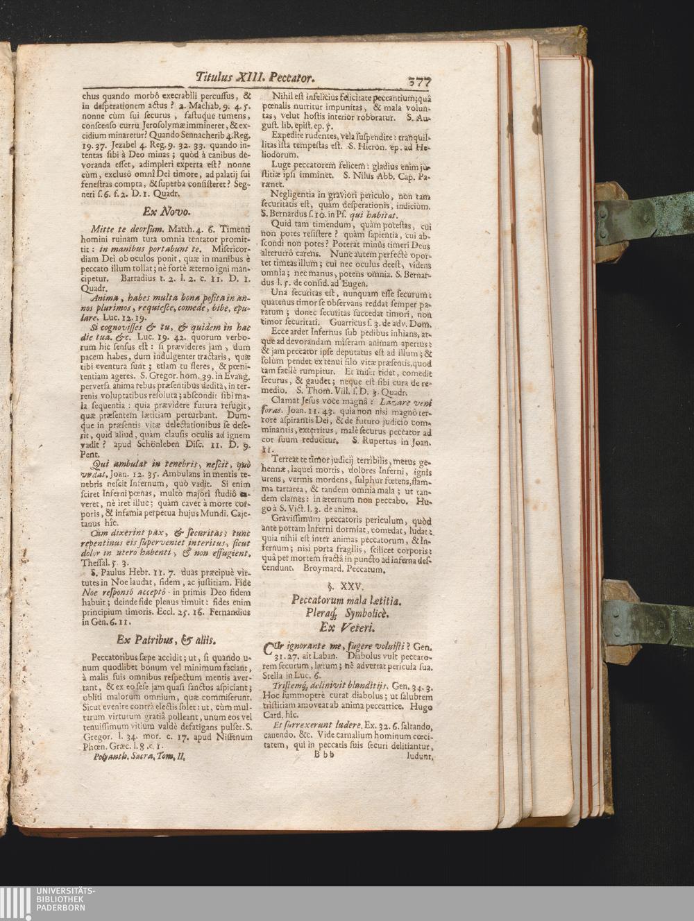 §. 25. Peccatorum mala lætitia. Pleraque symbolocè. Ex Veteri. Ex Novo, Patribus,[...]