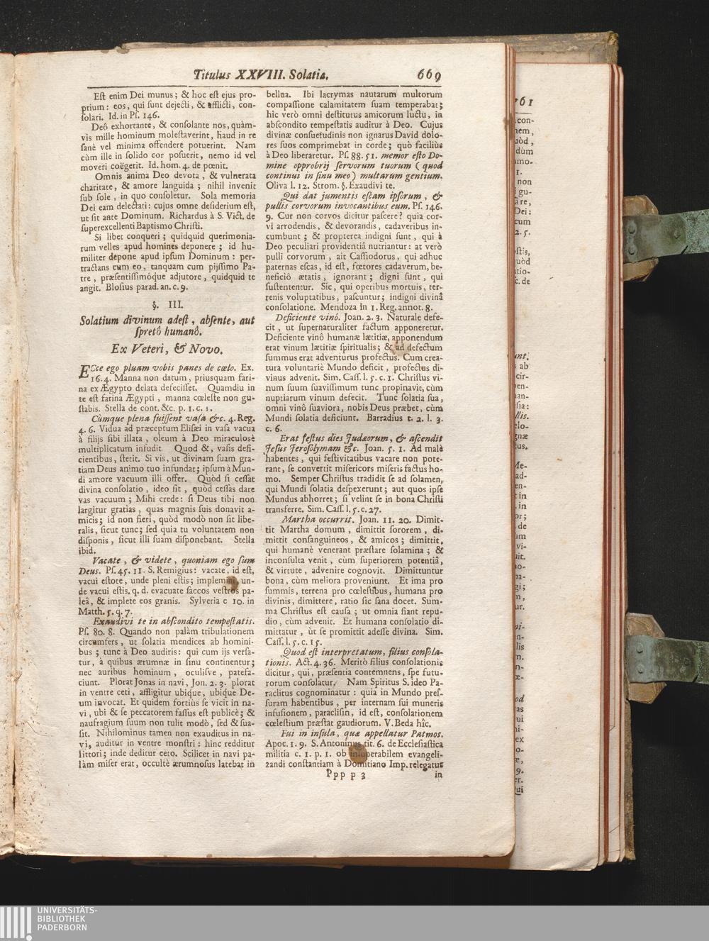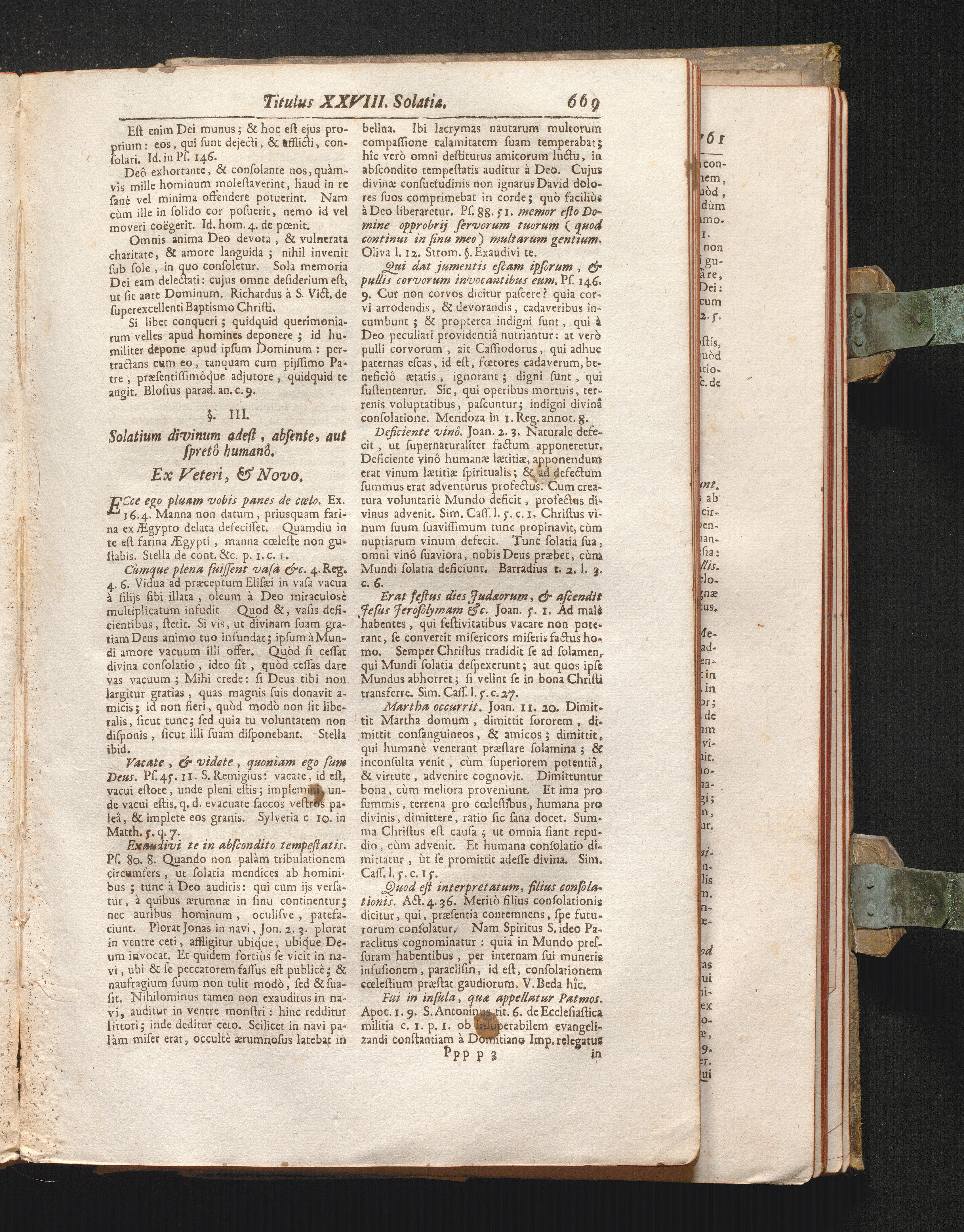 §. 3. Solatium divinum adest, absente, aut spretô, humanô. Ex Veteri, & Novo.
