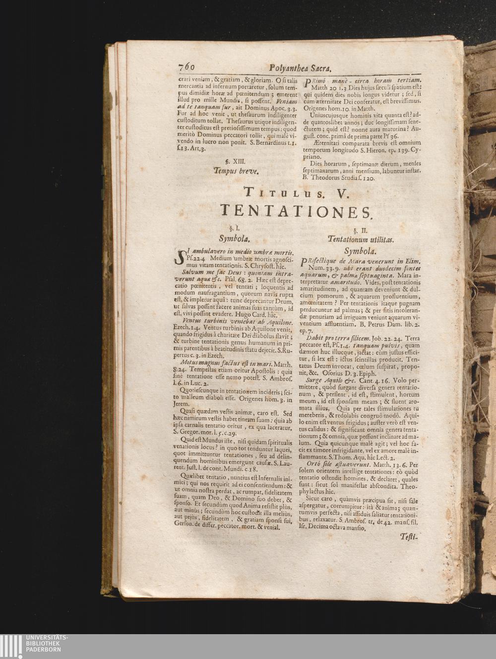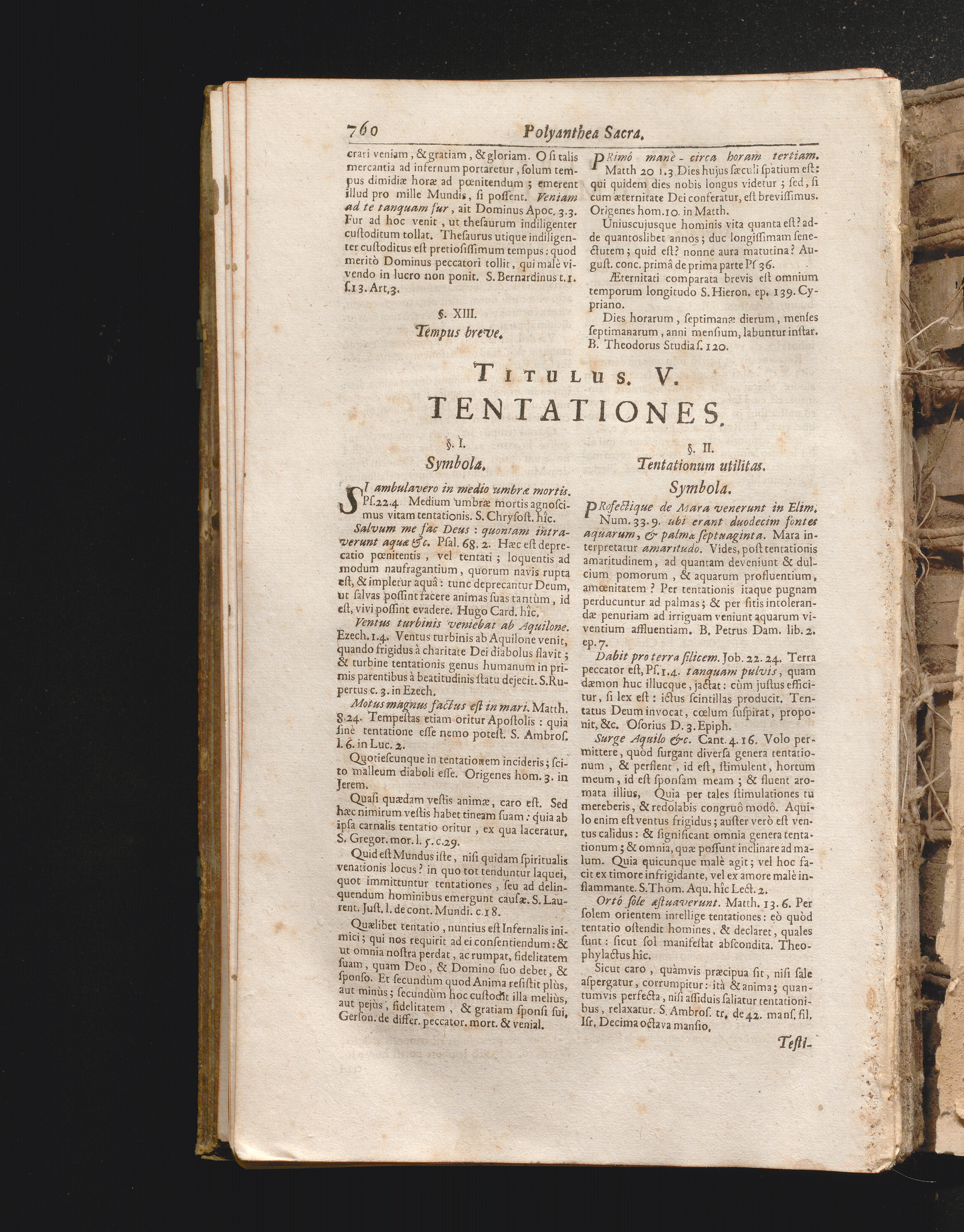 §. 2. Tentationum utilitas. Symbola. Testimonia. Ex Veteri, Novo, Patribus, & al[...]
