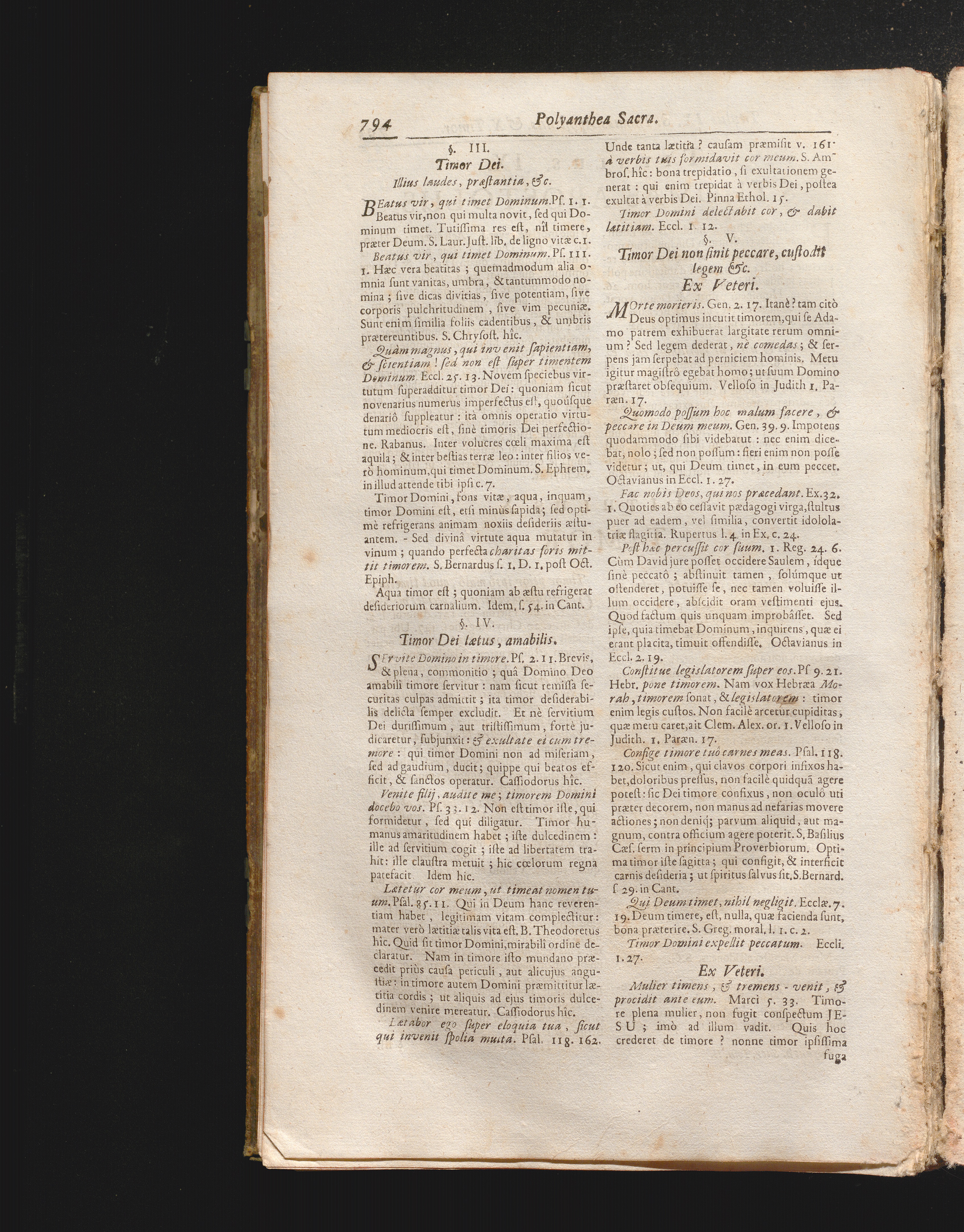 §. 5. Timor Dei non sinit peccare, custodit legem &c. Ex Veteri. Ex Novo.