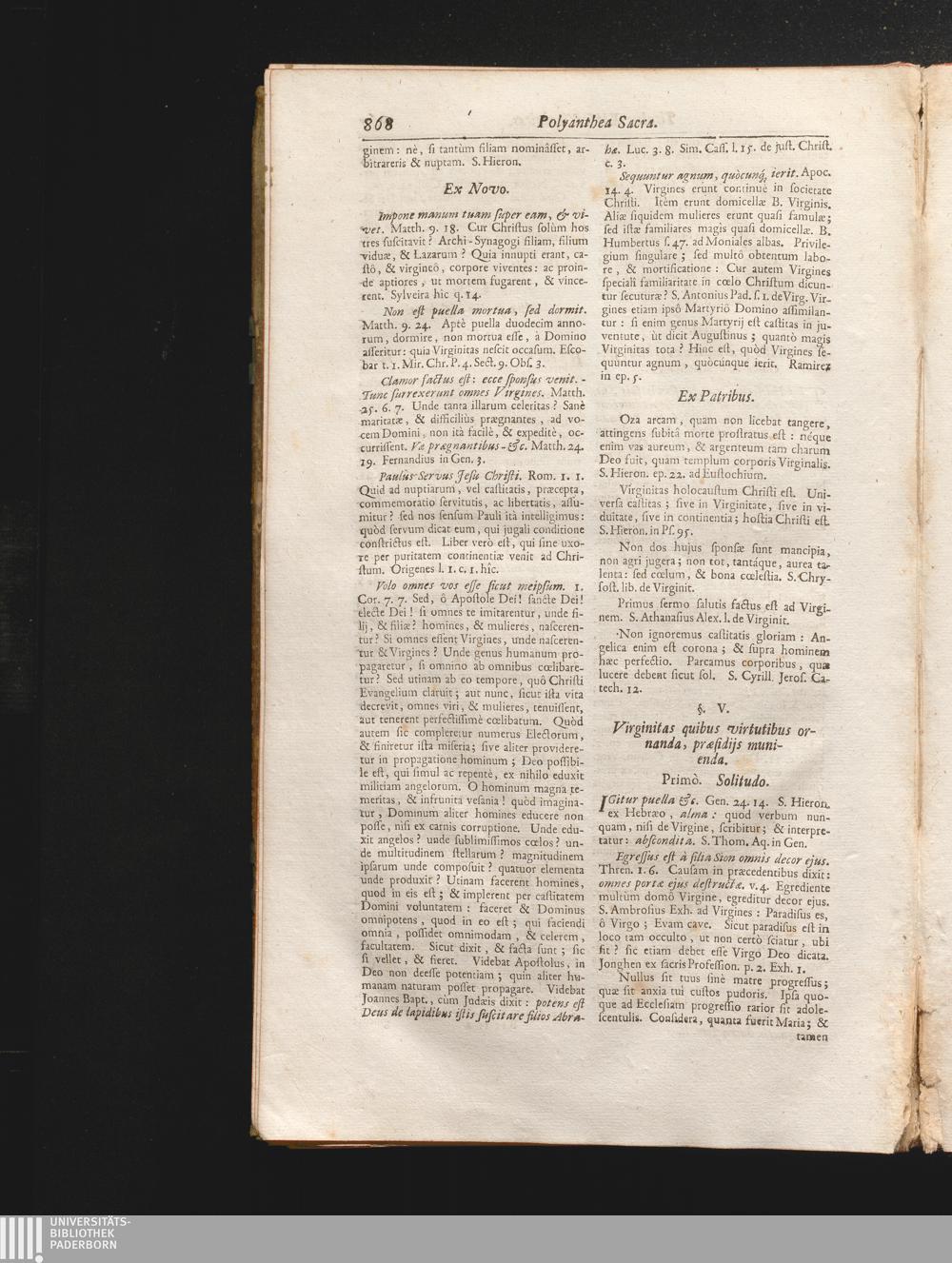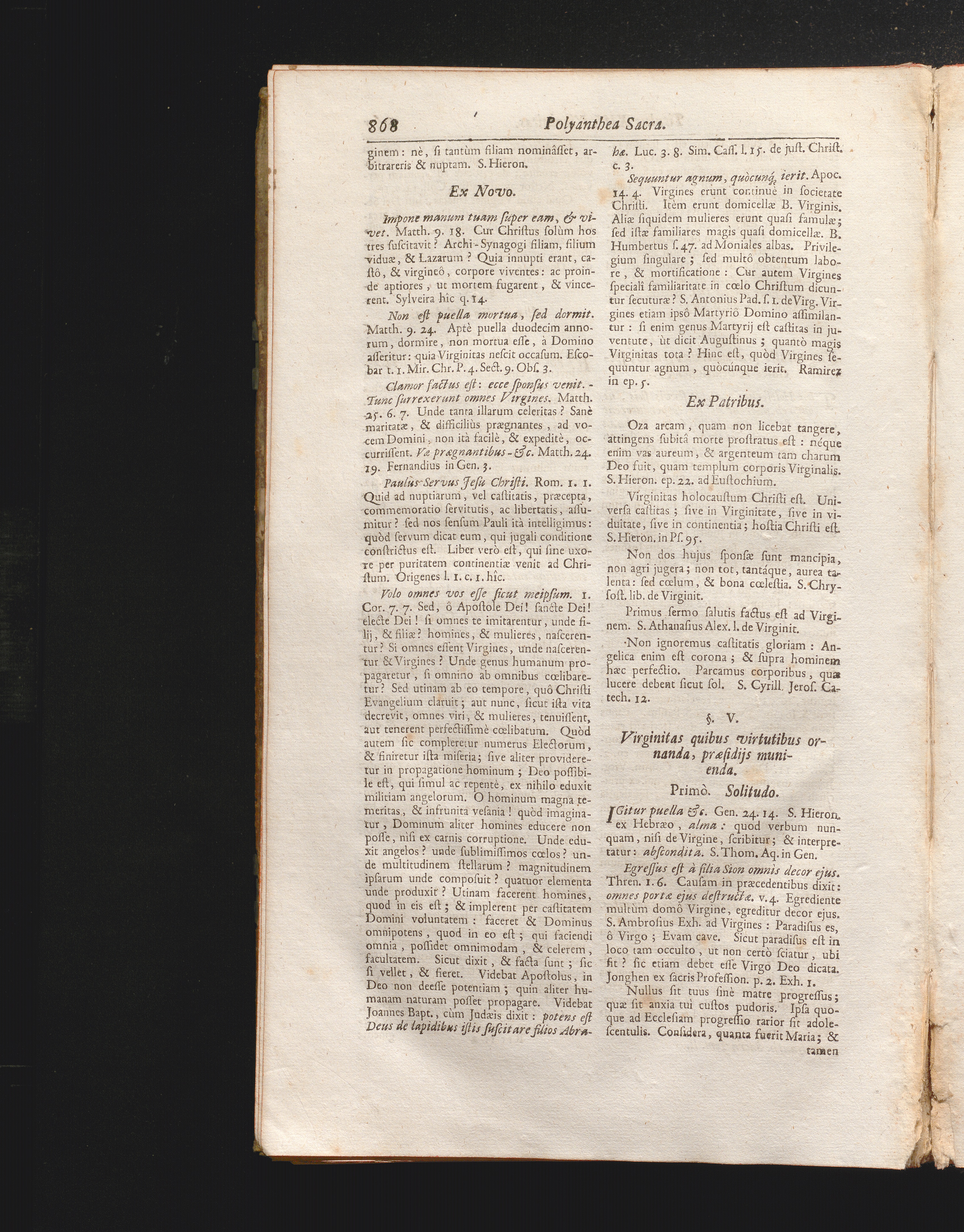 §. 5. Virginitas quibus virtutibus ornanda, præsidijs munienda, Primò solitudo. Secundò[...]