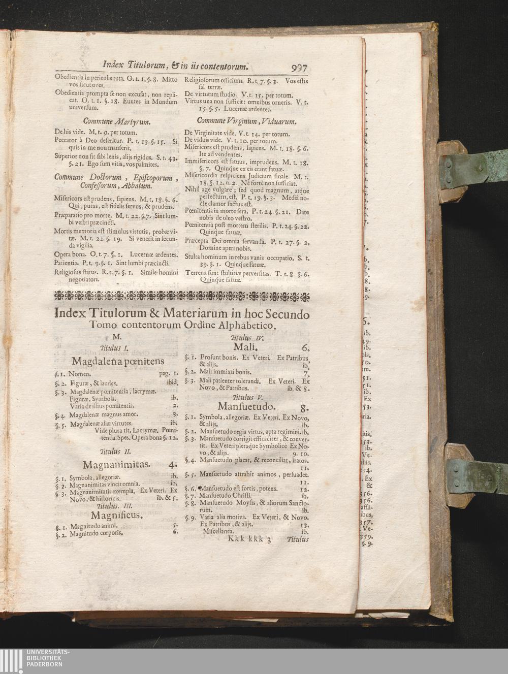 Index Titulorum & Materiarum in hoc Secundo Tomo contentorum Ordine Alphabetico.