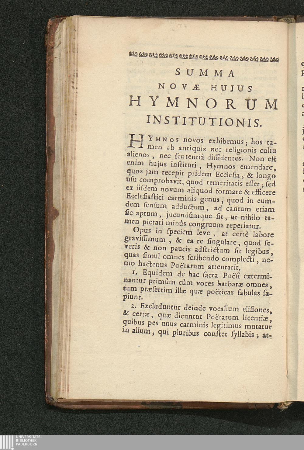Summa Novae Hujus Hymnorum Institutionis.