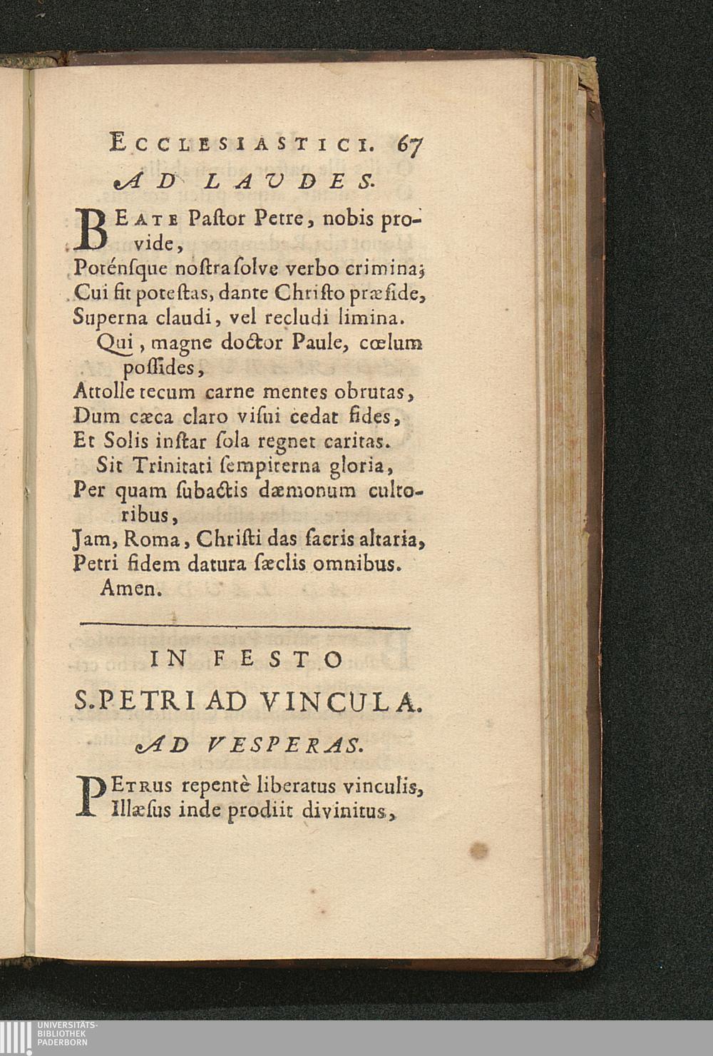 In Festo S. Petri Ad Vincula.