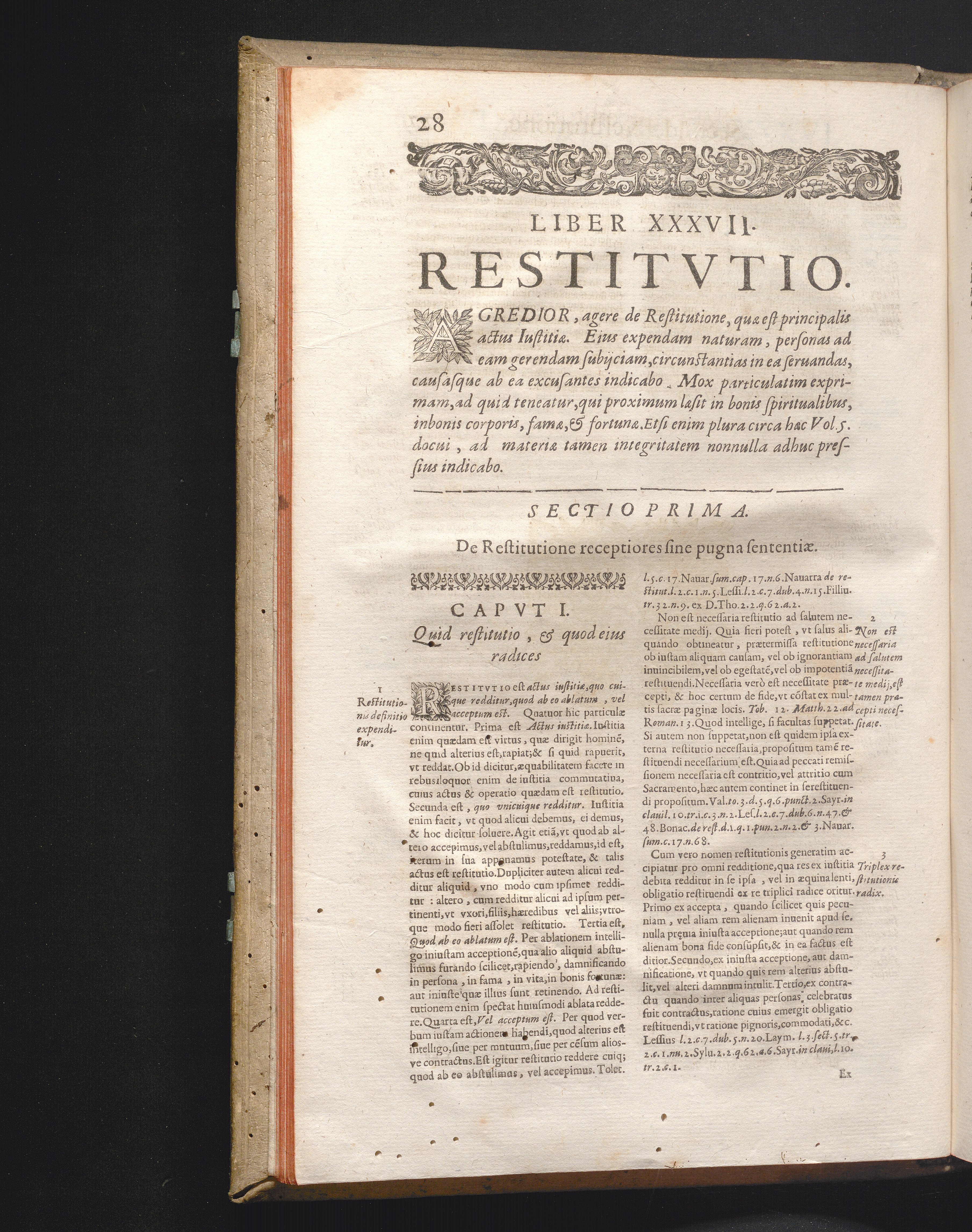 Tomi Qvinti Pars Prima (1663) Ivstitia Et, Ivs. Sex Libris totidem Tractatus appono, nempe de rerum Dominio, de Restitutione, de Contractibus Gratuitis, de Contractibus Onerosis, de Contractibus Fortunæ, de Contractibus Adminicularis, de Quasi-Contractibus, & nonnullis Innominatis