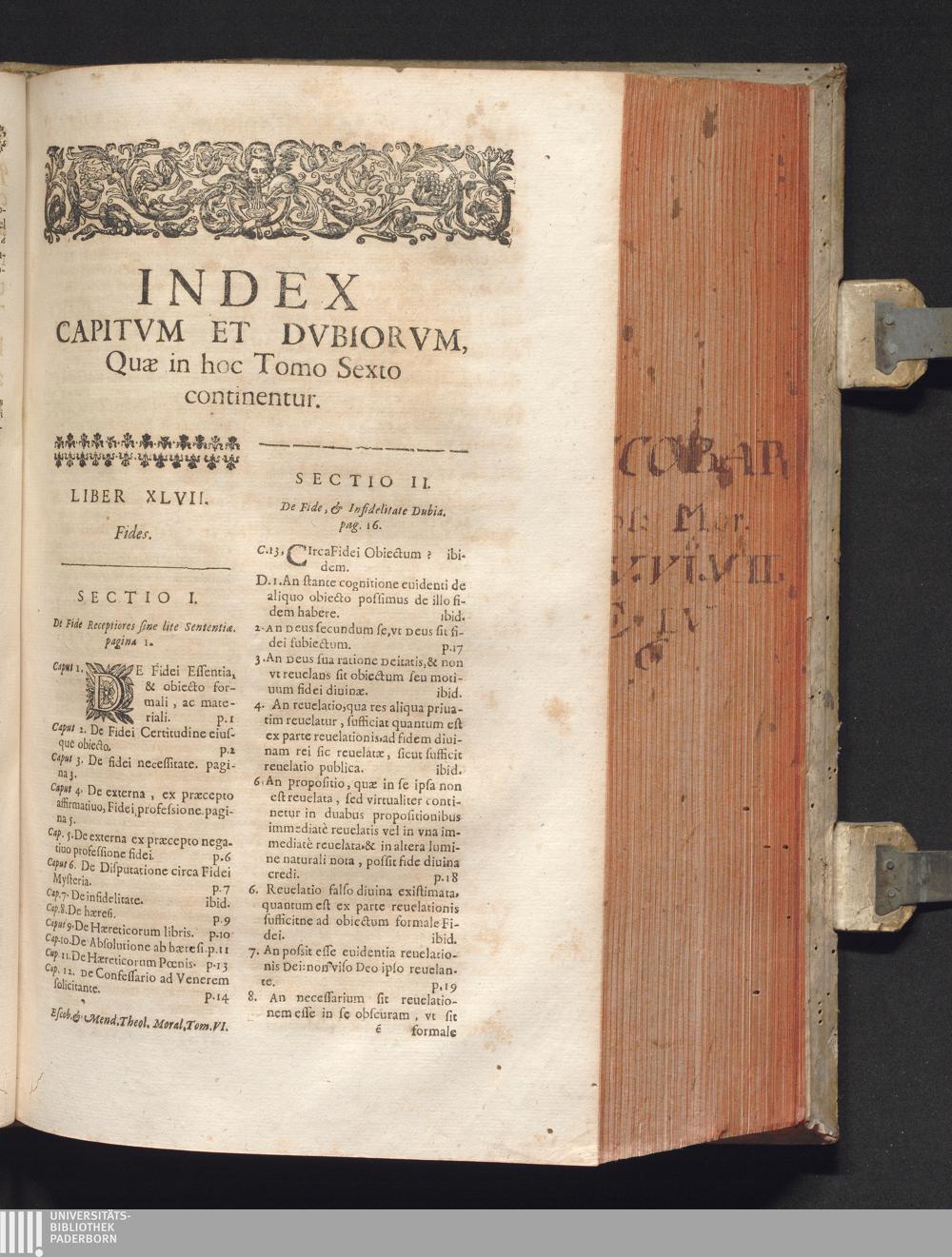 Index Capitvm Et Dvbiorvm, Quæ in hoc Tomo Sexto continentur.