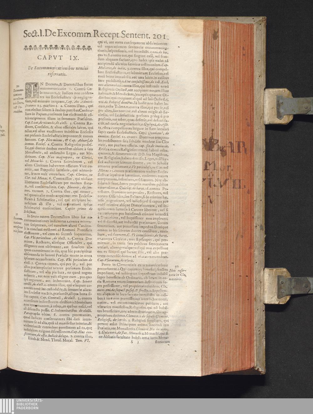 Sectio I. De Excommunicatione Receptiores sine lite Sententiæ.