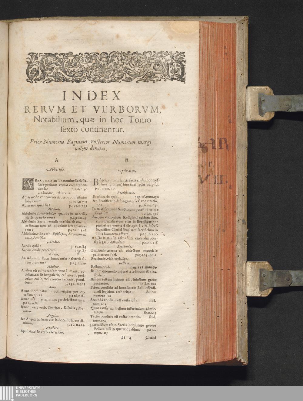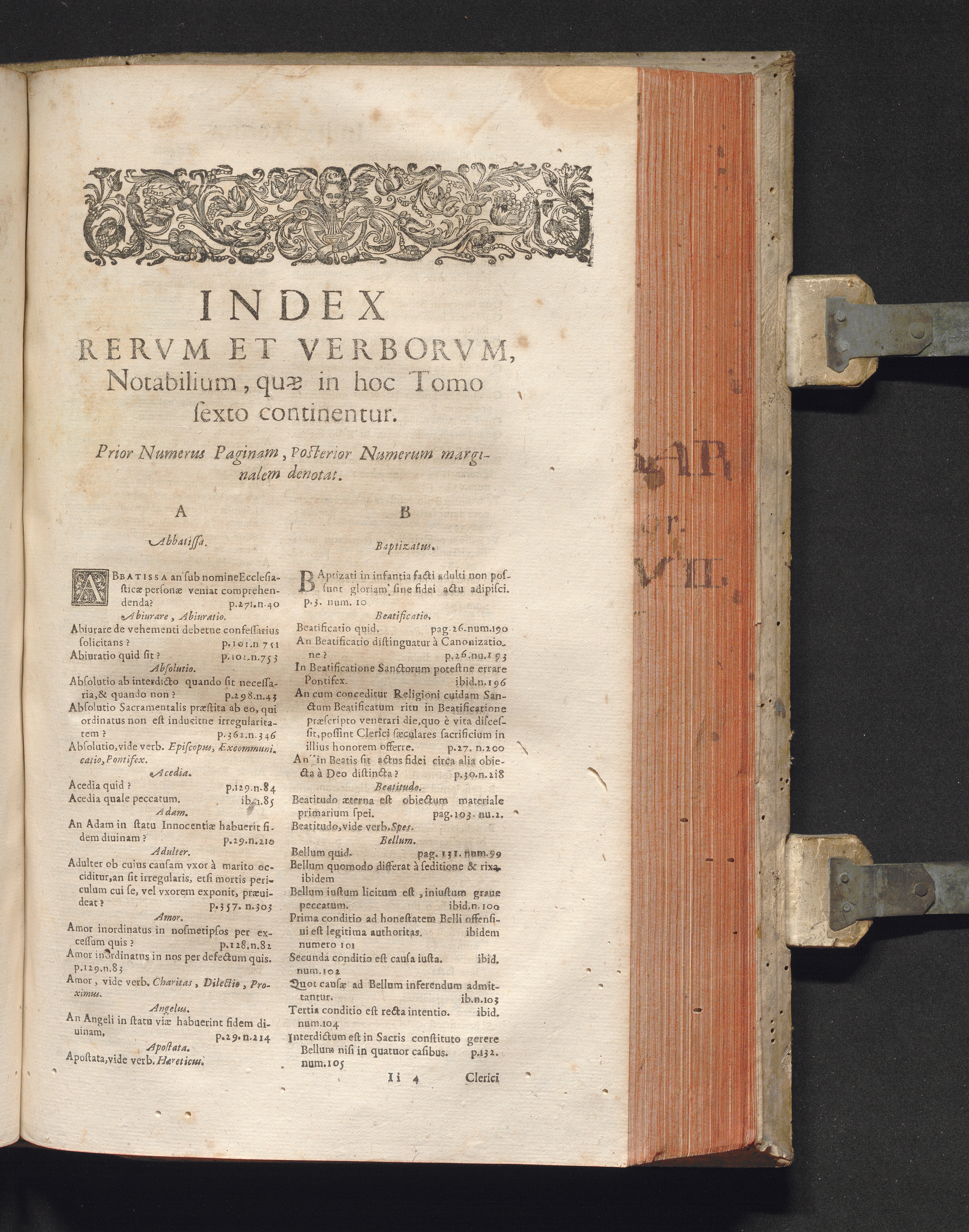 Index Rervm Et Verborvm, Notabilium, quæ in hoc tomo sexto continentur.