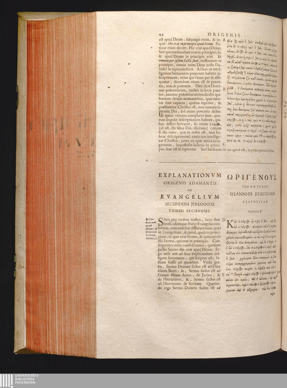 Explanationvm Origenis Adamantii In Evangelivm Secundum Johannem Tomus Secundus.