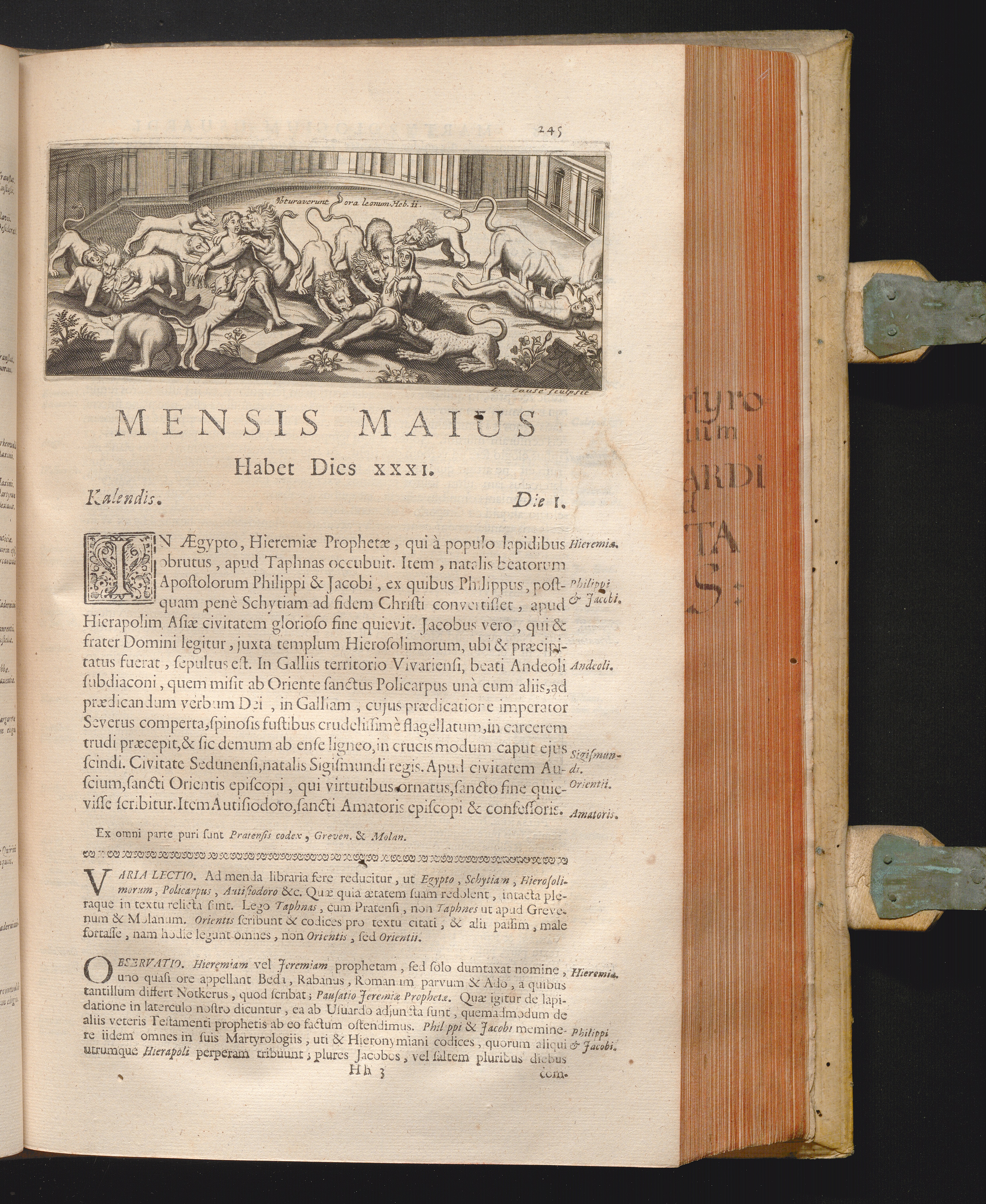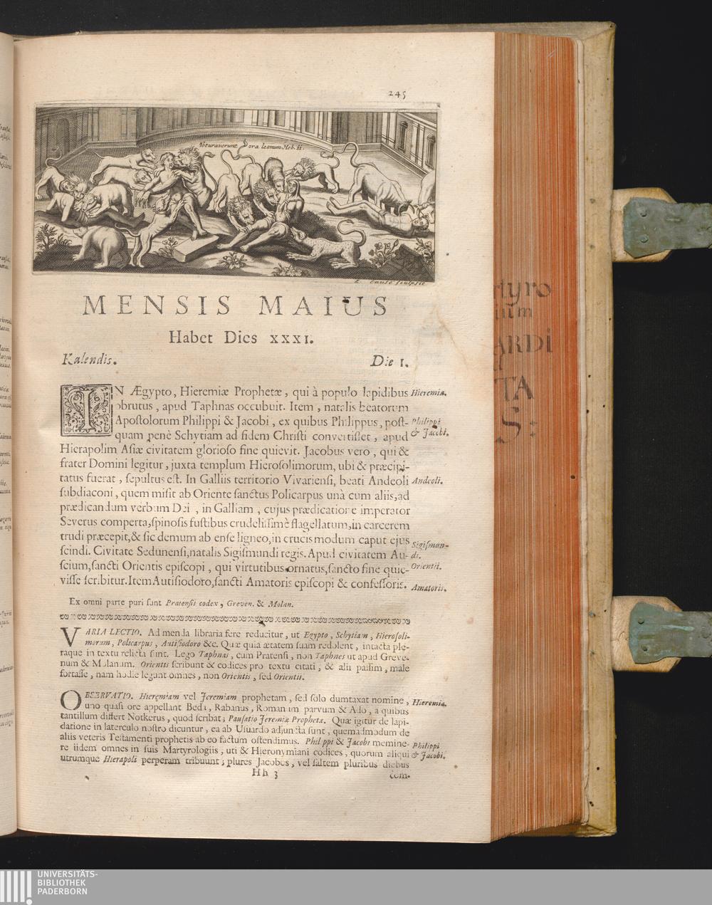 Martyrologium Usuardi Monachi : Hac Nova Editione Ad excusa exemplaria quatuordecim, ad codices Mss. integros decem et septem, atque ad alios ferme quinquaginta collatum, ab additamentis expurgatum, castigatum et quotidianis observationibus illustratum / Opera Et Studio Joannis Baptistae Sollerii Societatis Jesu Theologi
