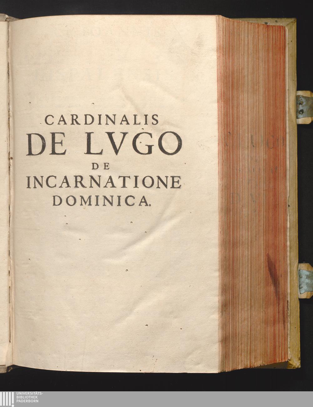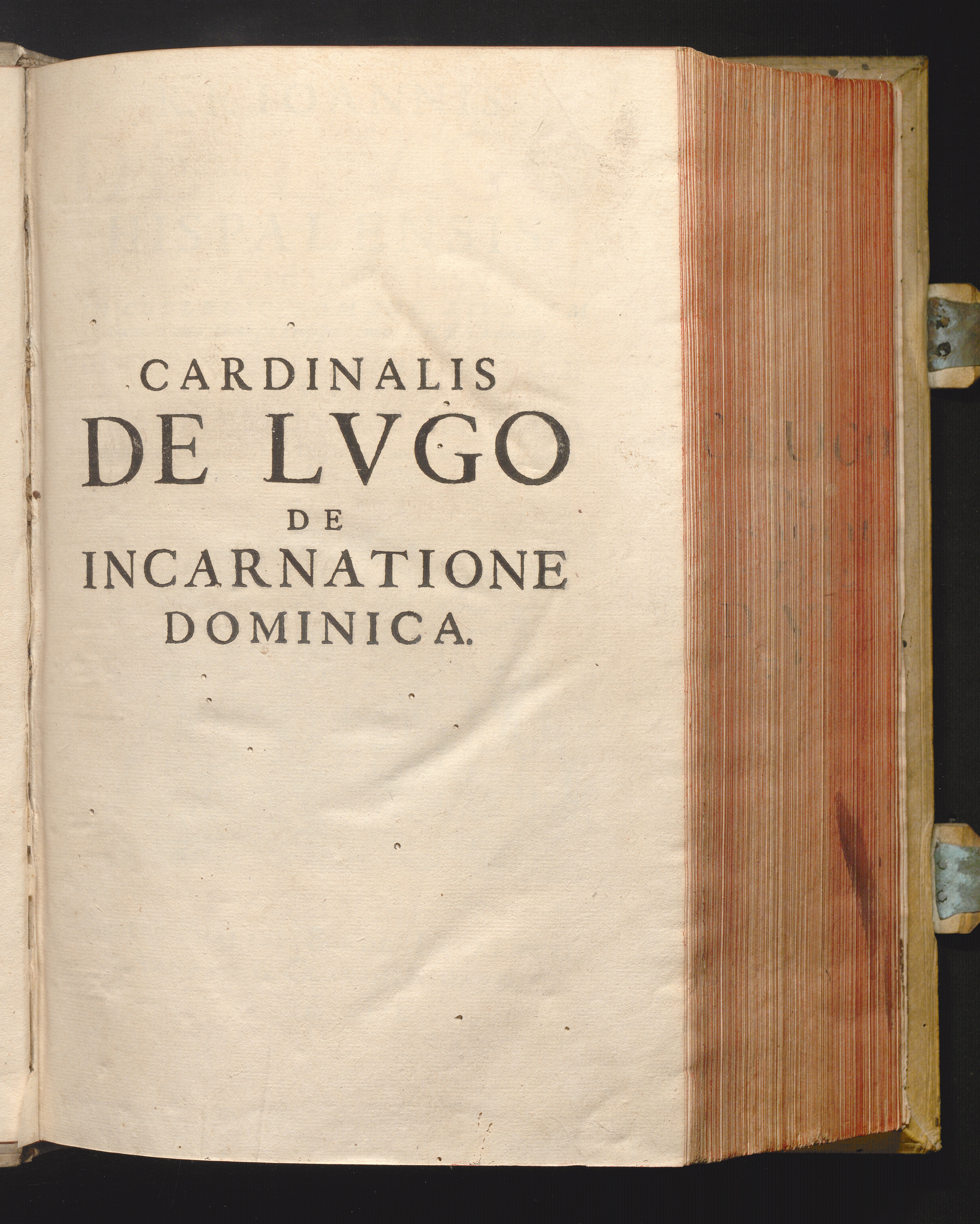 R. P. Ioannis De Lvgo Hispalensis, E Societate Iesv, In Collegio Romano Eivsdem Societatis olim Theologiæ Professoris, nunc S. R. E. Cardinalis. Dispvtationes Scholasticæ De Incarnatione Dominica : Cum duplici Indice; vno Disputationum & Sectionum; altero Rerum & Verborum notabilium