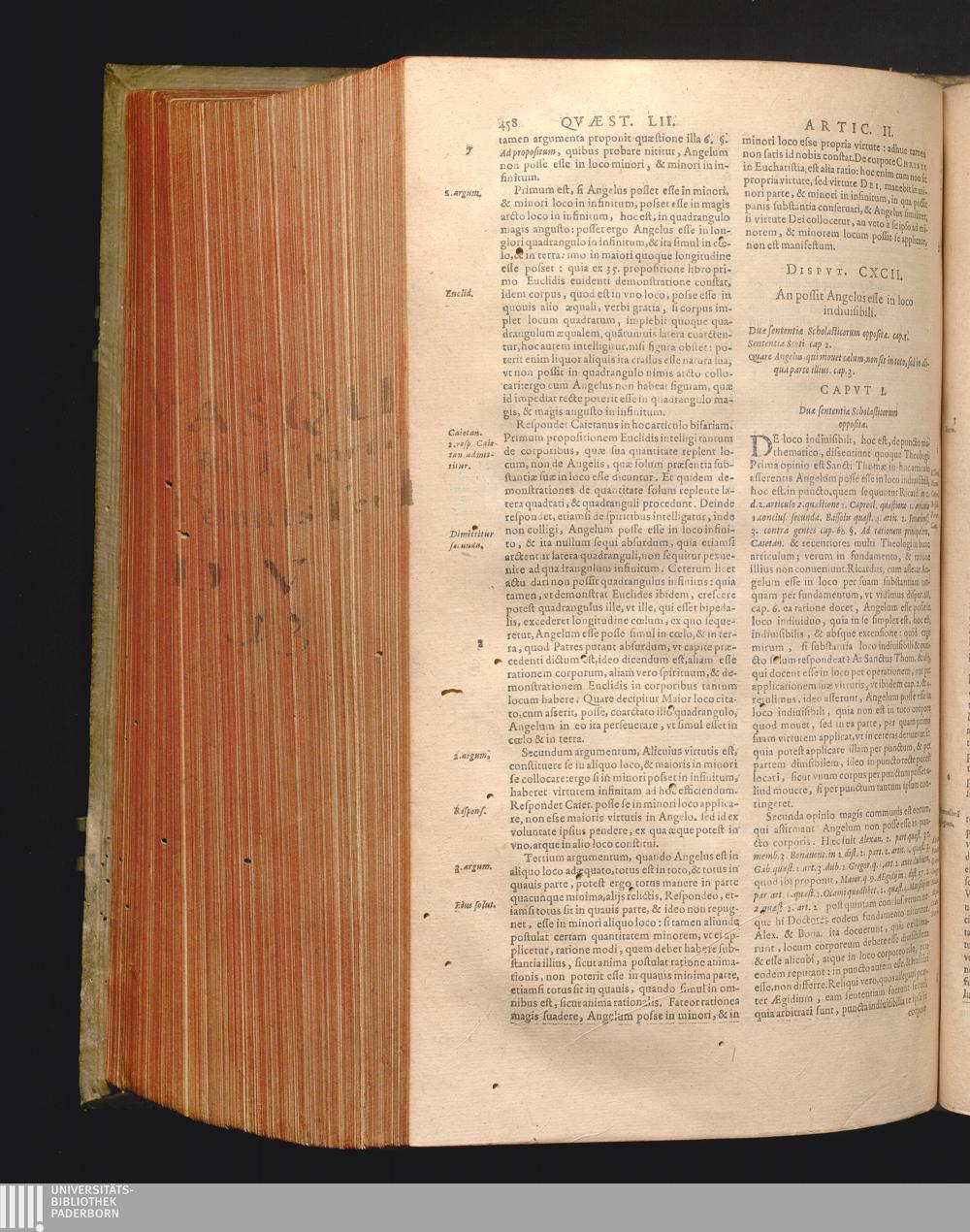 Dispvt. CXCII. An possit Angelus esse in loco indiuisibili.