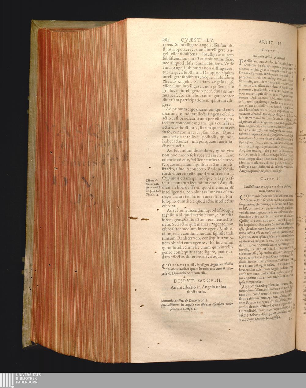 Dispvt. CXCVIII. An intellectio in Angelo sit sua substantia.