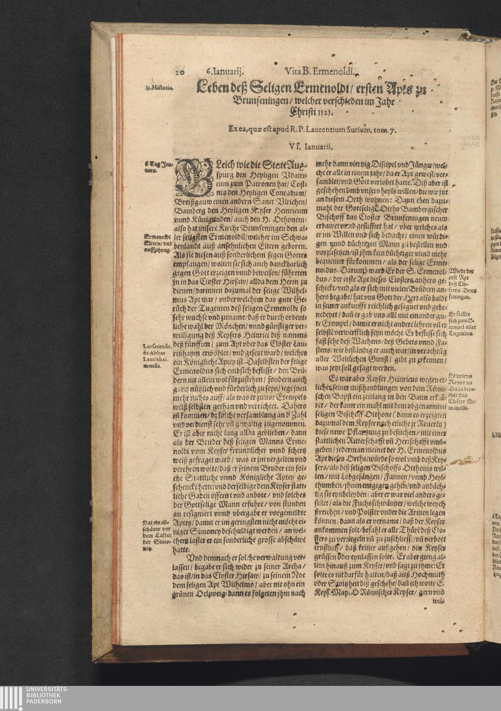 Vitæ Sanctorvm / Etwa von Francisco Haræo S. Theol. lice[n]tiato in latein beschrieben auch folgents augirt. Nachmals auß dem latein mit besonderm fleiß verteutscht, itzt aber widerumb vffs neuw corrigirt vnd vber die helfft verbessert Durch Valentinum Leuchtium SS. Theol. Doct. Proton. Apostolicum, Comitem palenti. & commiss. Cæsareum, Cantorem, & Concion. ad S. Barthol. Francoforti
