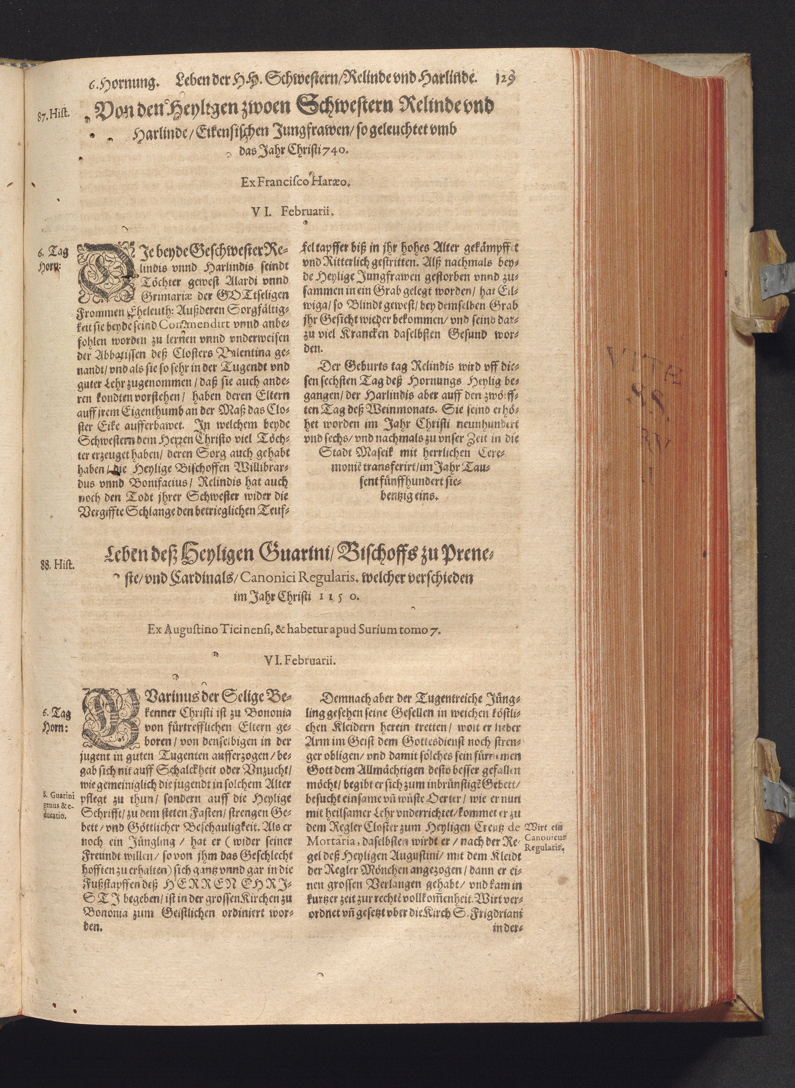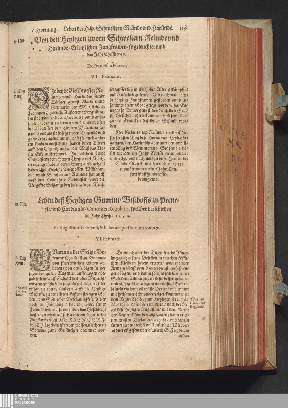 Vitæ Sanctorvm / Etwa von Francisco Haræo S. Theol. lice[n]tiato in latein beschrieben auch folgents augirt. Nachmals auß dem latein mit besonderm fleiß verteutscht, itzt aber widerumb vffs neuw corrigirt vnd vber die helfft verbessert Durch Valentinum Leuchtium SS. Theol. Doct. Proton. Apostolicum, Comitem palenti. & commiss. Cæsareum, Cantorem, & Concion. ad S. Barthol. Francoforti