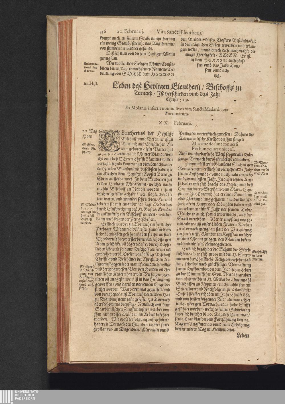 Vitæ Sanctorvm / Etwa von Francisco Haræo S. Theol. lice[n]tiato in latein beschrieben auch folgents augirt. Nachmals auß dem latein mit besonderm fleiß verteutscht, itzt aber widerumb vffs neuw corrigirt vnd vber die helfft verbessert Durch Valentinum Leuchtium SS. Theol. Doct. Proton. Apostolicum, Comitem palenti. & commiss. Cæsareum, Cantorem, & Concion. ad S. Barthol. Francoforti