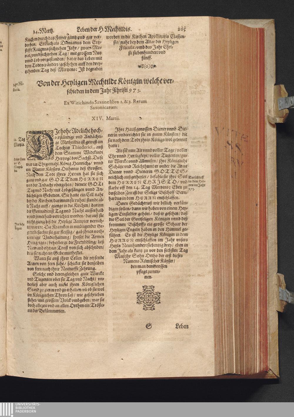 Vitæ Sanctorvm / Etwa von Francisco Haræo S. Theol. lice[n]tiato in latein beschrieben auch folgents augirt. Nachmals auß dem latein mit besonderm fleiß verteutscht, itzt aber widerumb vffs neuw corrigirt vnd vber die helfft verbessert Durch Valentinum Leuchtium SS. Theol. Doct. Proton. Apostolicum, Comitem palenti. & commiss. Cæsareum, Cantorem, & Concion. ad S. Barthol. Francoforti