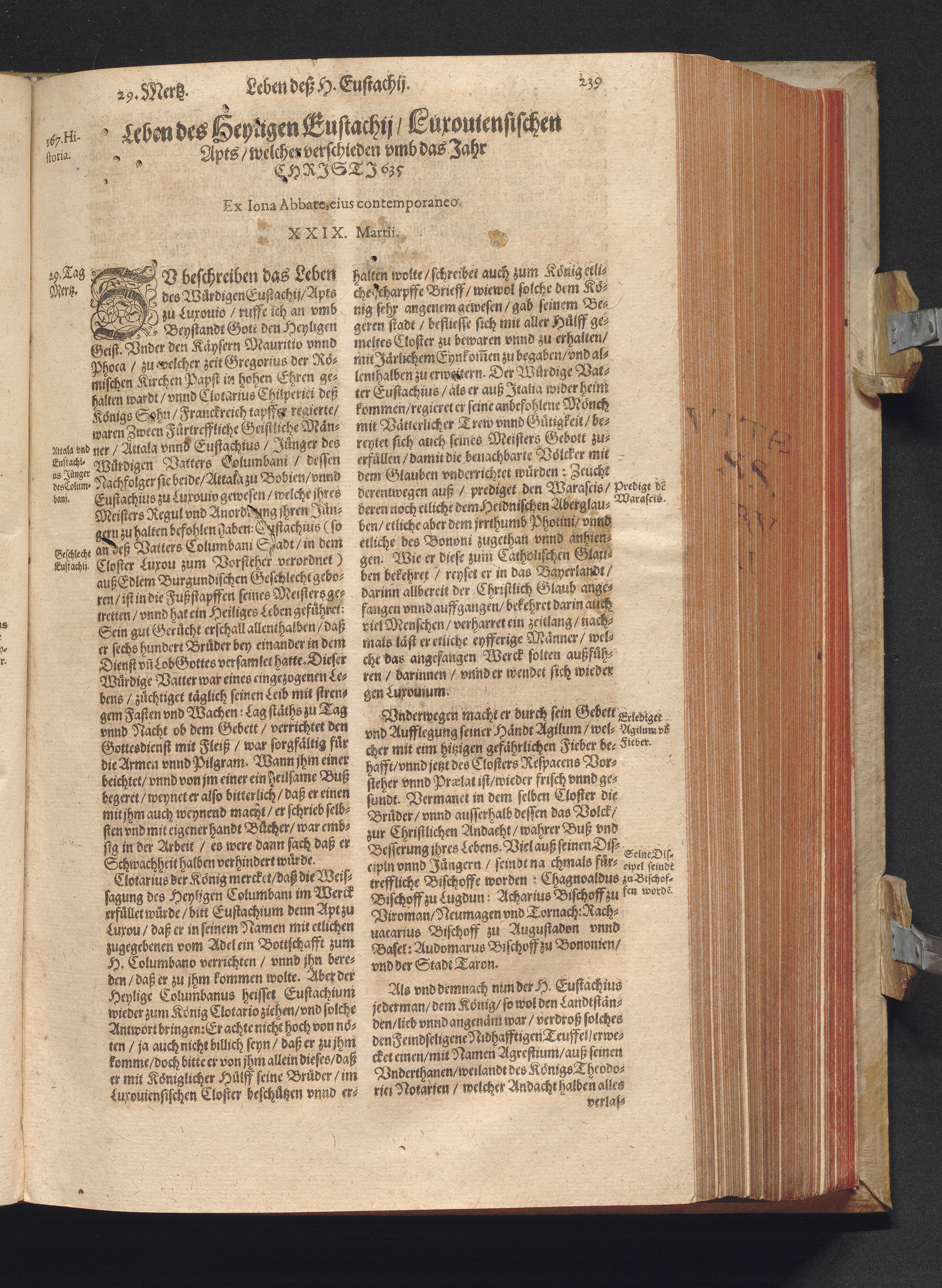 Vitæ Sanctorvm / Etwa von Francisco Haræo S. Theol. lice[n]tiato in latein beschrieben auch folgents augirt. Nachmals auß dem latein mit besonderm fleiß verteutscht, itzt aber widerumb vffs neuw corrigirt vnd vber die helfft verbessert Durch Valentinum Leuchtium SS. Theol. Doct. Proton. Apostolicum, Comitem palenti. & commiss. Cæsareum, Cantorem, & Concion. ad S. Barthol. Francoforti