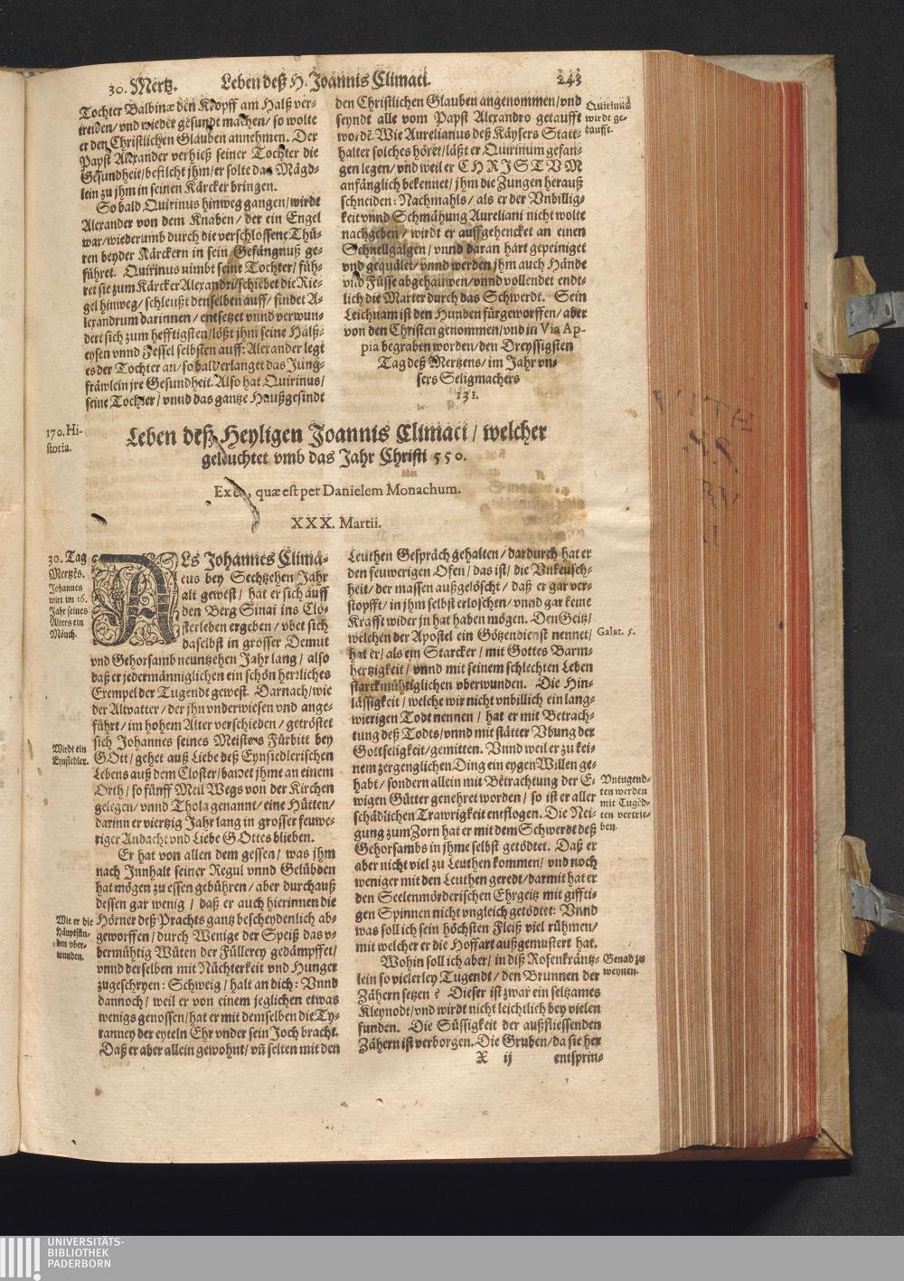Vitæ Sanctorvm / Etwa von Francisco Haræo S. Theol. lice[n]tiato in latein beschrieben auch folgents augirt. Nachmals auß dem latein mit besonderm fleiß verteutscht, itzt aber widerumb vffs neuw corrigirt vnd vber die helfft verbessert Durch Valentinum Leuchtium SS. Theol. Doct. Proton. Apostolicum, Comitem palenti. & commiss. Cæsareum, Cantorem, & Concion. ad S. Barthol. Francoforti