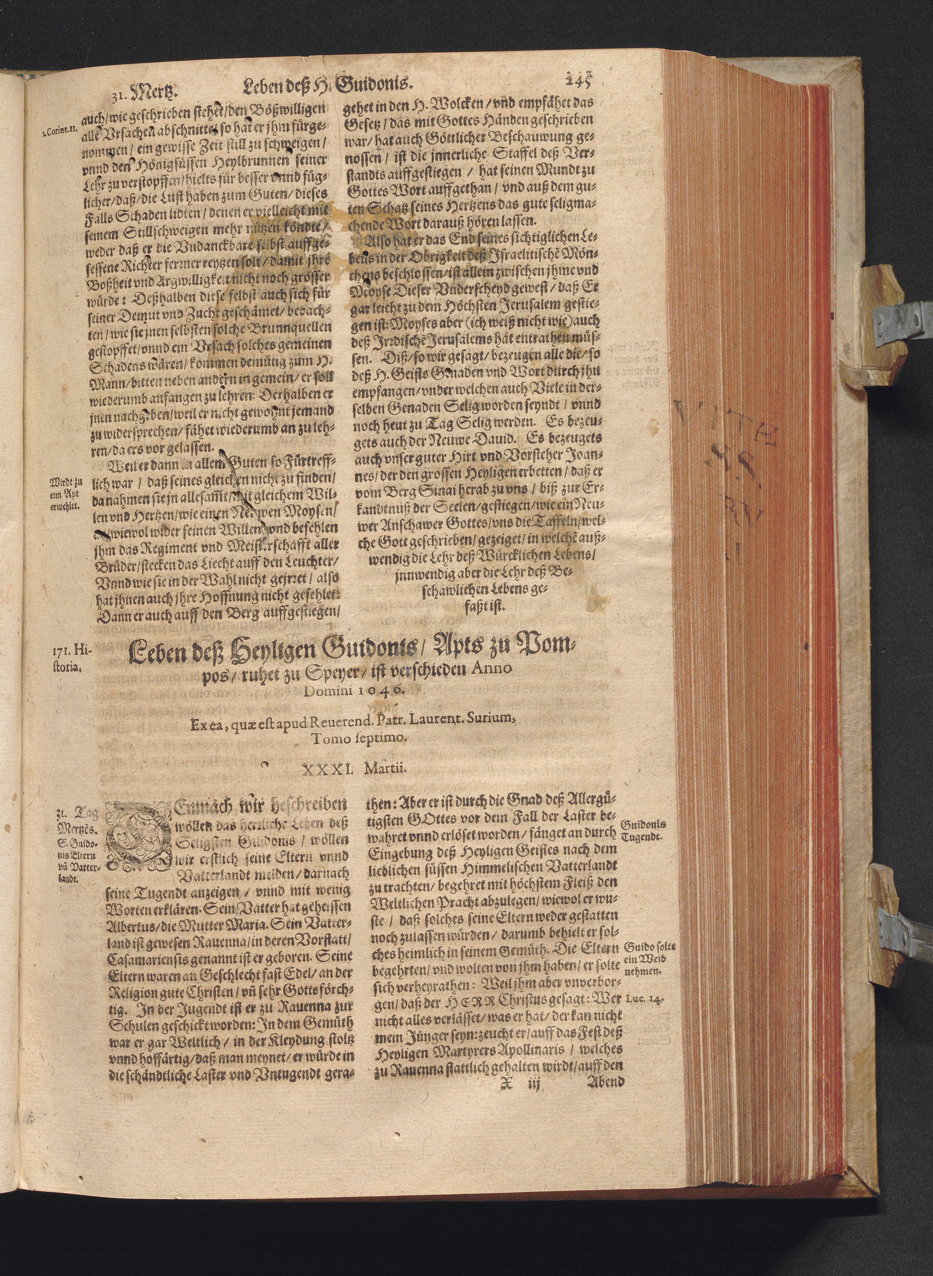 Vitæ Sanctorvm / Etwa von Francisco Haræo S. Theol. lice[n]tiato in latein beschrieben auch folgents augirt. Nachmals auß dem latein mit besonderm fleiß verteutscht, itzt aber widerumb vffs neuw corrigirt vnd vber die helfft verbessert Durch Valentinum Leuchtium SS. Theol. Doct. Proton. Apostolicum, Comitem palenti. & commiss. Cæsareum, Cantorem, & Concion. ad S. Barthol. Francoforti