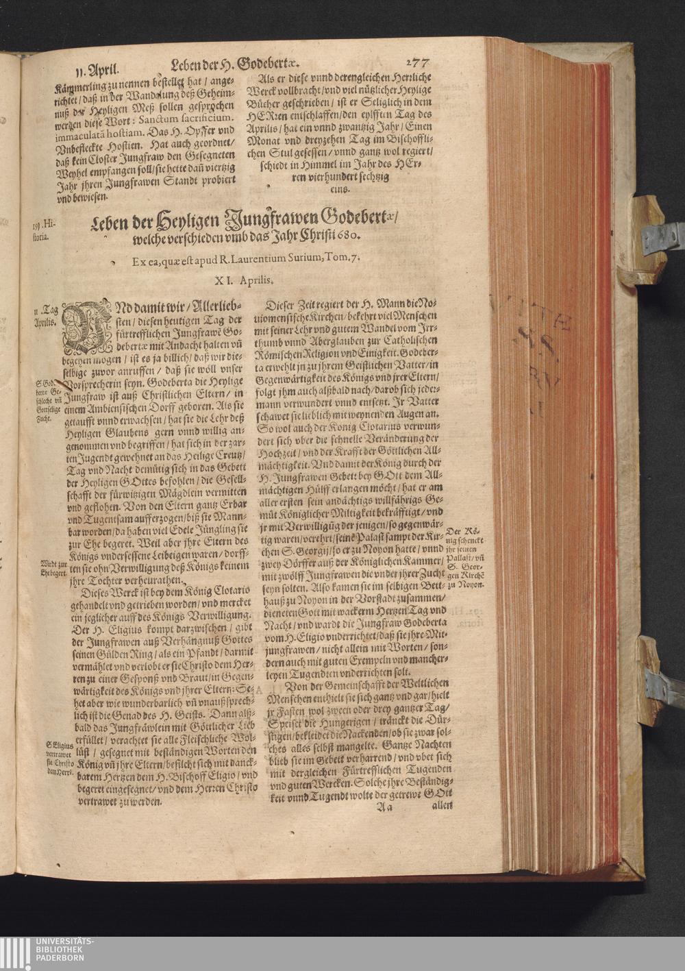 Vitæ Sanctorvm / Etwa von Francisco Haræo S. Theol. lice[n]tiato in latein beschrieben auch folgents augirt. Nachmals auß dem latein mit besonderm fleiß verteutscht, itzt aber widerumb vffs neuw corrigirt vnd vber die helfft verbessert Durch Valentinum Leuchtium SS. Theol. Doct. Proton. Apostolicum, Comitem palenti. & commiss. Cæsareum, Cantorem, & Concion. ad S. Barthol. Francoforti