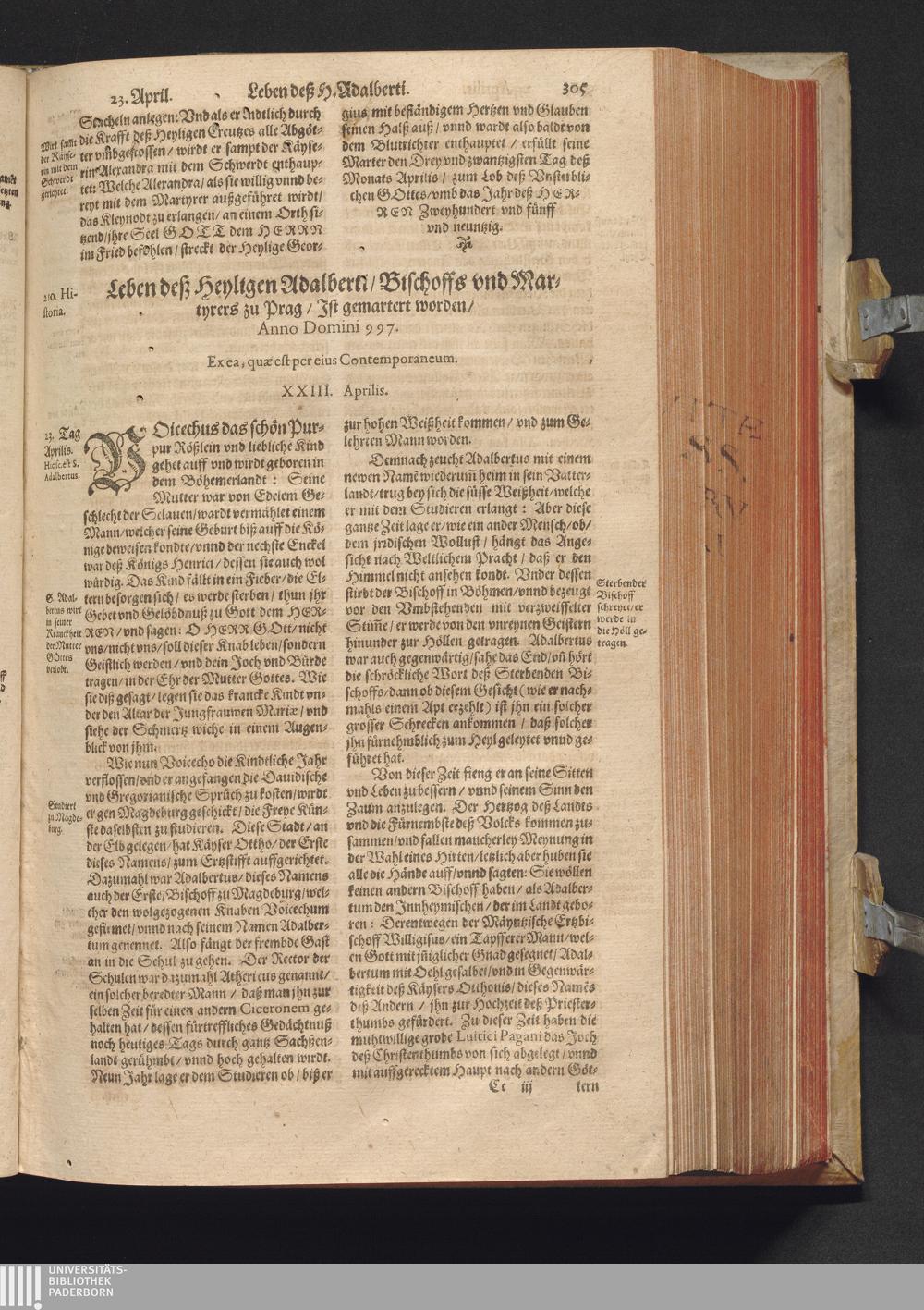 Vitæ Sanctorvm / Etwa von Francisco Haræo S. Theol. lice[n]tiato in latein beschrieben auch folgents augirt. Nachmals auß dem latein mit besonderm fleiß verteutscht, itzt aber widerumb vffs neuw corrigirt vnd vber die helfft verbessert Durch Valentinum Leuchtium SS. Theol. Doct. Proton. Apostolicum, Comitem palenti. & commiss. Cæsareum, Cantorem, & Concion. ad S. Barthol. Francoforti