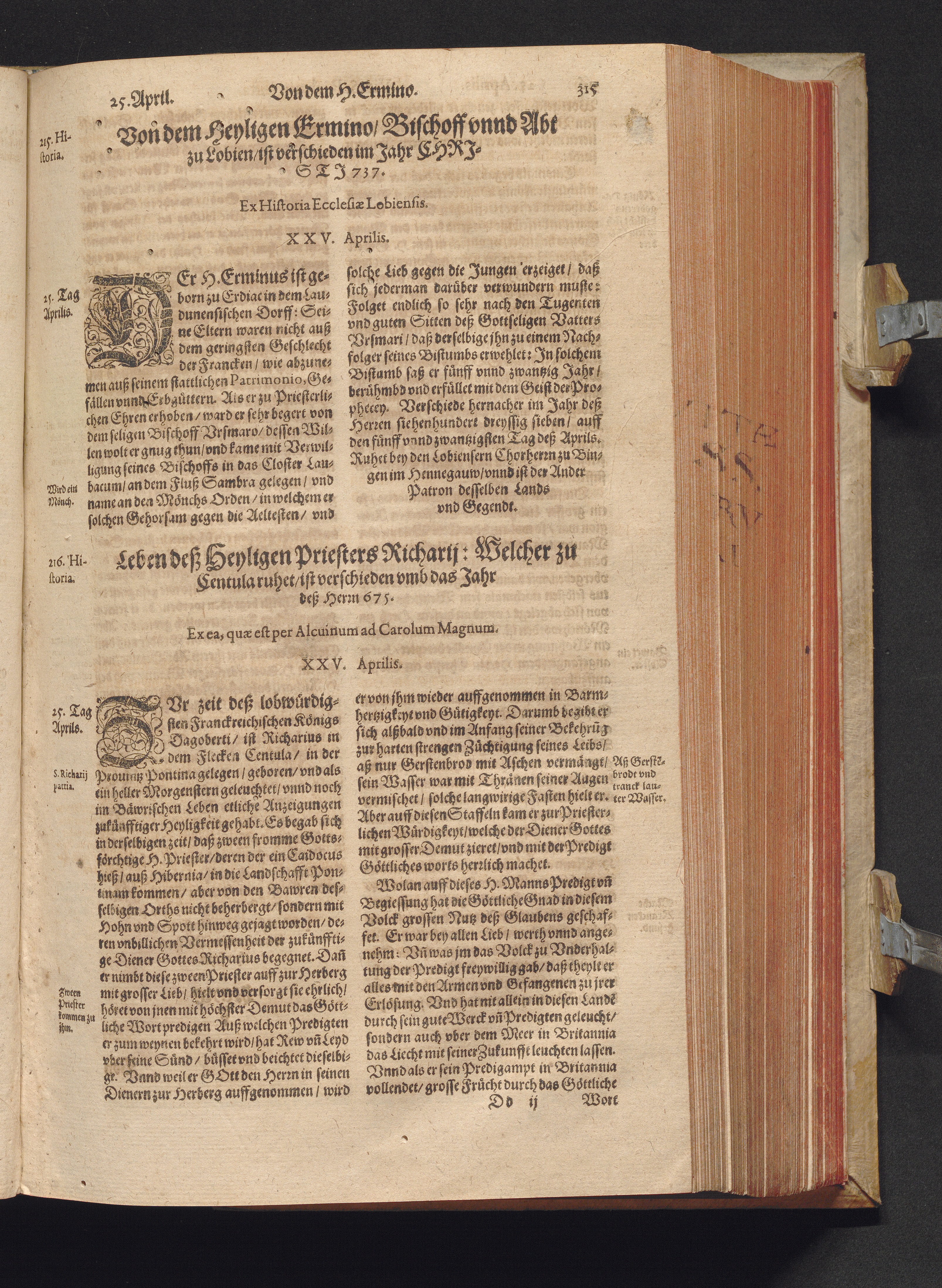 Vitæ Sanctorvm / Etwa von Francisco Haræo S. Theol. lice[n]tiato in latein beschrieben auch folgents augirt. Nachmals auß dem latein mit besonderm fleiß verteutscht, itzt aber widerumb vffs neuw corrigirt vnd vber die helfft verbessert Durch Valentinum Leuchtium SS. Theol. Doct. Proton. Apostolicum, Comitem palenti. & commiss. Cæsareum, Cantorem, & Concion. ad S. Barthol. Francoforti