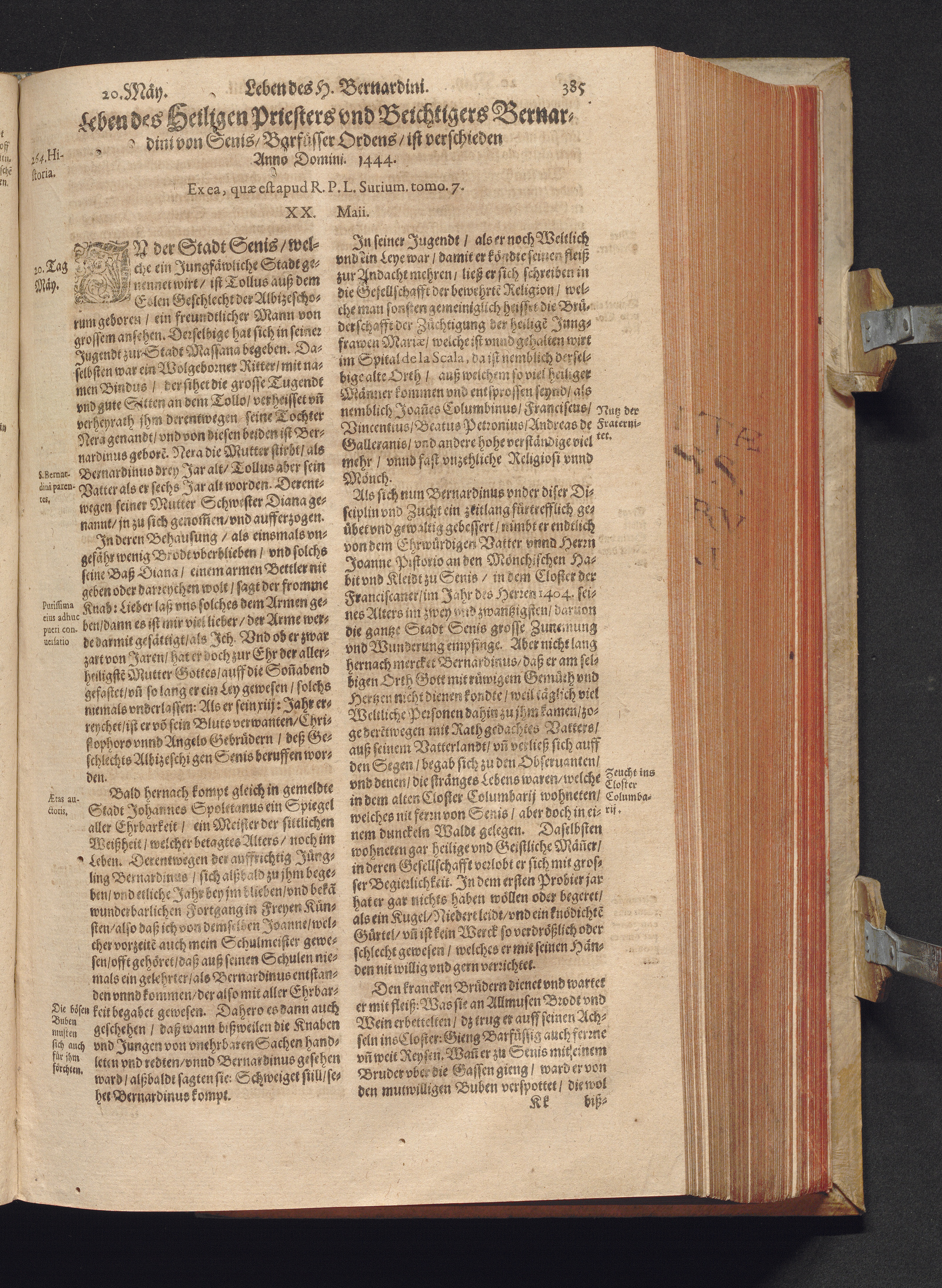 Vitæ Sanctorvm / Etwa von Francisco Haræo S. Theol. lice[n]tiato in latein beschrieben auch folgents augirt. Nachmals auß dem latein mit besonderm fleiß verteutscht, itzt aber widerumb vffs neuw corrigirt vnd vber die helfft verbessert Durch Valentinum Leuchtium SS. Theol. Doct. Proton. Apostolicum, Comitem palenti. & commiss. Cæsareum, Cantorem, & Concion. ad S. Barthol. Francoforti