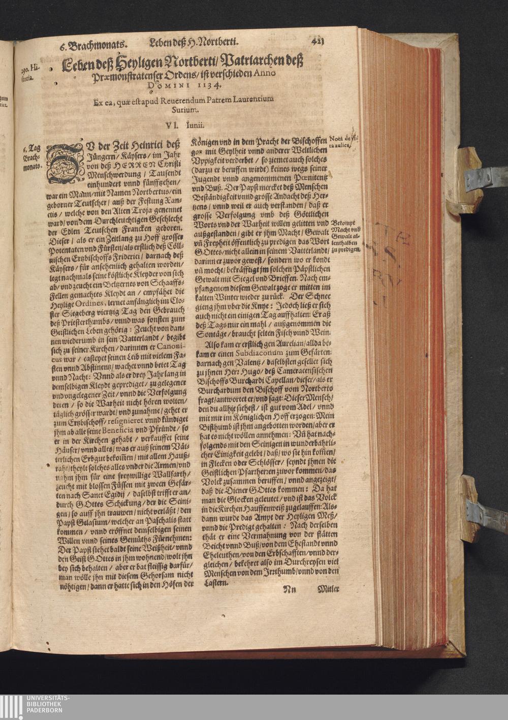 Vitæ Sanctorvm / Etwa von Francisco Haræo S. Theol. lice[n]tiato in latein beschrieben auch folgents augirt. Nachmals auß dem latein mit besonderm fleiß verteutscht, itzt aber widerumb vffs neuw corrigirt vnd vber die helfft verbessert Durch Valentinum Leuchtium SS. Theol. Doct. Proton. Apostolicum, Comitem palenti. & commiss. Cæsareum, Cantorem, & Concion. ad S. Barthol. Francoforti