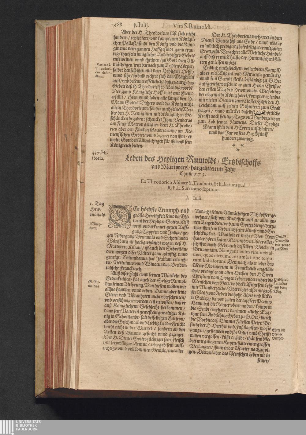 Vitæ Sanctorvm / Etwa von Francisco Haræo S. Theol. lice[n]tiato in latein beschrieben auch folgents augirt. Nachmals auß dem latein mit besonderm fleiß verteutscht, itzt aber widerumb vffs neuw corrigirt vnd vber die helfft verbessert Durch Valentinum Leuchtium SS. Theol. Doct. Proton. Apostolicum, Comitem palenti. & commiss. Cæsareum, Cantorem, & Concion. ad S. Barthol. Francoforti