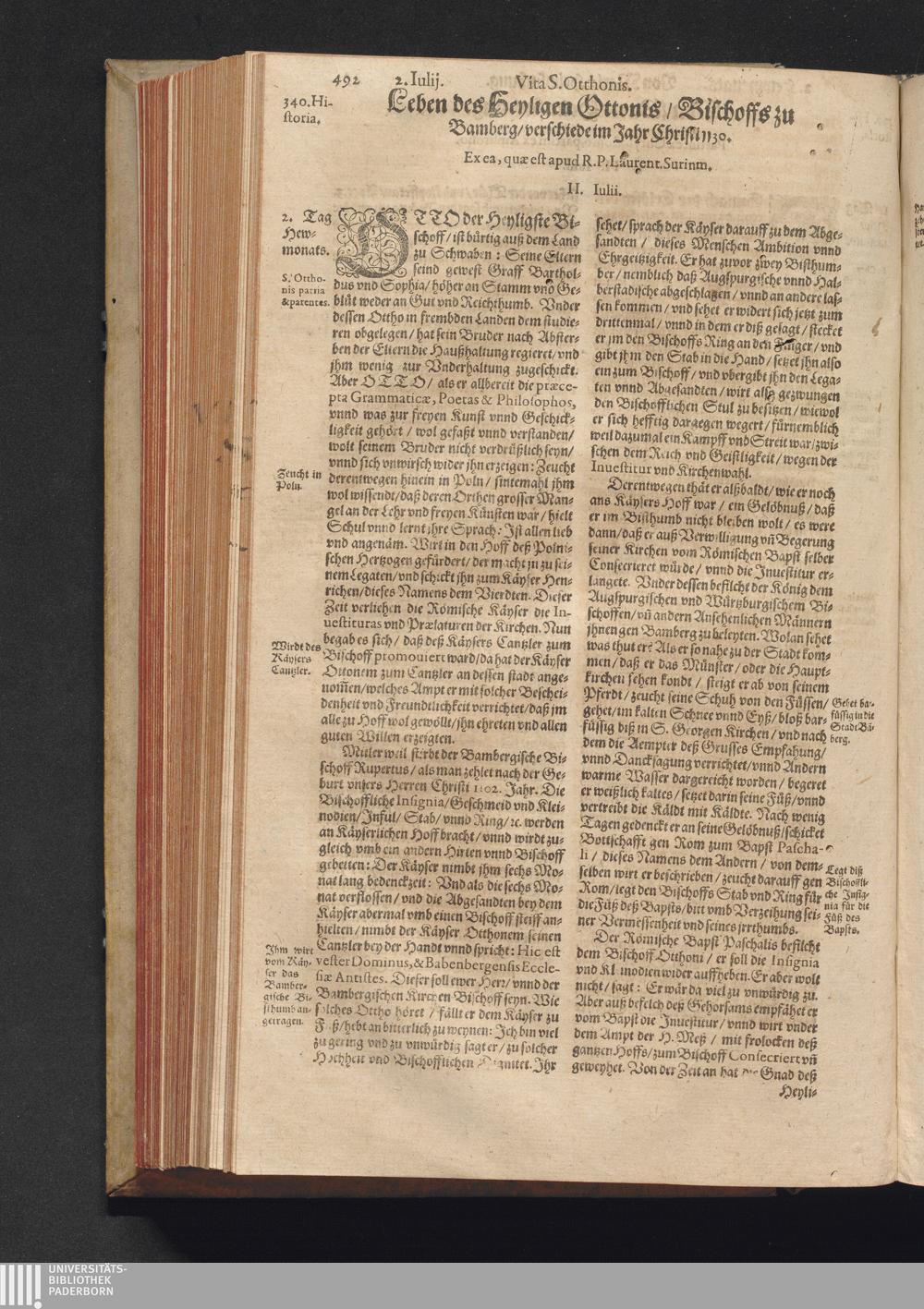 Vitæ Sanctorvm / Etwa von Francisco Haræo S. Theol. lice[n]tiato in latein beschrieben auch folgents augirt. Nachmals auß dem latein mit besonderm fleiß verteutscht, itzt aber widerumb vffs neuw corrigirt vnd vber die helfft verbessert Durch Valentinum Leuchtium SS. Theol. Doct. Proton. Apostolicum, Comitem palenti. & commiss. Cæsareum, Cantorem, & Concion. ad S. Barthol. Francoforti
