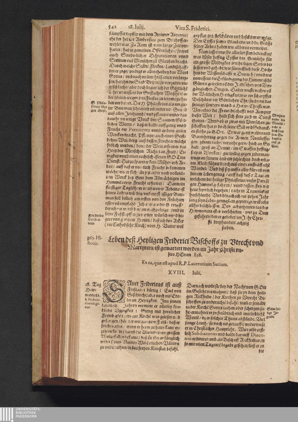 Vitæ Sanctorvm / Etwa von Francisco Haræo S. Theol. lice[n]tiato in latein beschrieben auch folgents augirt. Nachmals auß dem latein mit besonderm fleiß verteutscht, itzt aber widerumb vffs neuw corrigirt vnd vber die helfft verbessert Durch Valentinum Leuchtium SS. Theol. Doct. Proton. Apostolicum, Comitem palenti. & commiss. Cæsareum, Cantorem, & Concion. ad S. Barthol. Francoforti