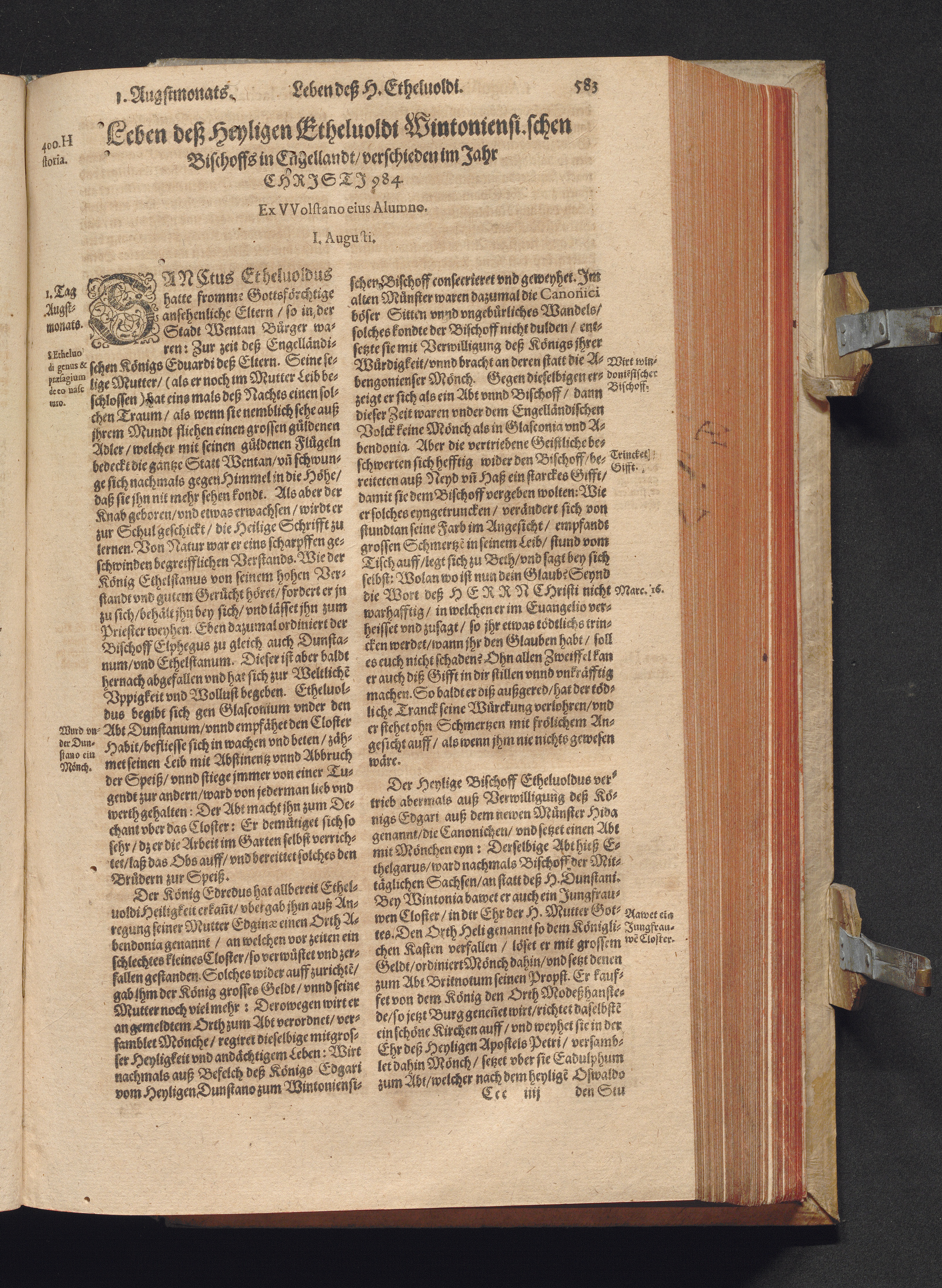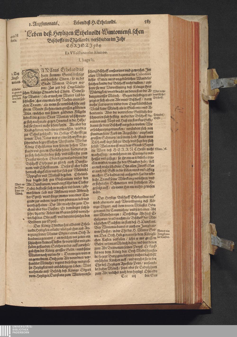 Vitæ Sanctorvm / Etwa von Francisco Haræo S. Theol. lice[n]tiato in latein beschrieben auch folgents augirt. Nachmals auß dem latein mit besonderm fleiß verteutscht, itzt aber widerumb vffs neuw corrigirt vnd vber die helfft verbessert Durch Valentinum Leuchtium SS. Theol. Doct. Proton. Apostolicum, Comitem palenti. & commiss. Cæsareum, Cantorem, & Concion. ad S. Barthol. Francoforti