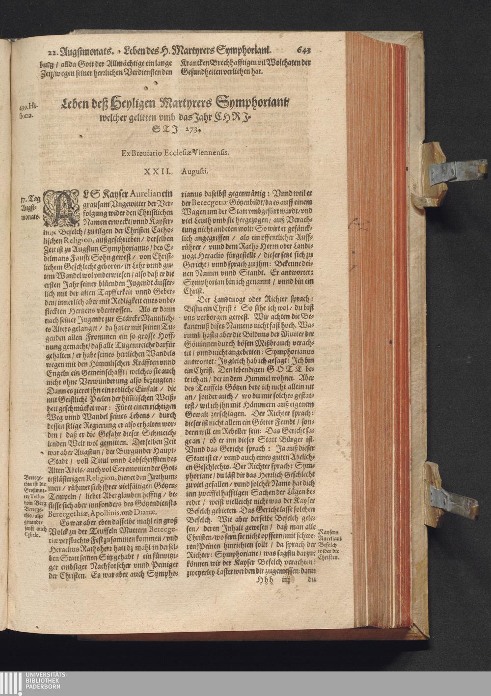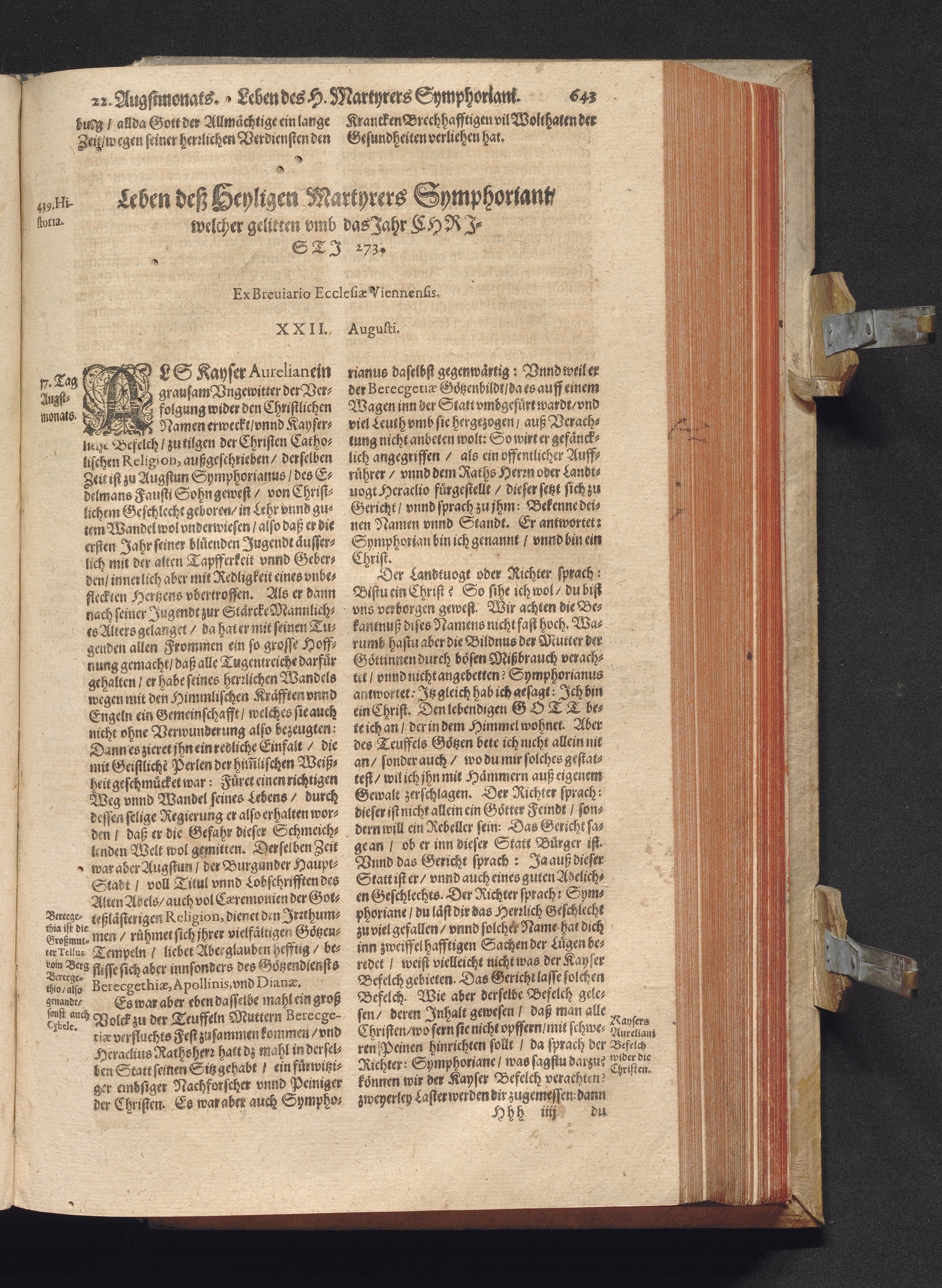Vitæ Sanctorvm / Etwa von Francisco Haræo S. Theol. lice[n]tiato in latein beschrieben auch folgents augirt. Nachmals auß dem latein mit besonderm fleiß verteutscht, itzt aber widerumb vffs neuw corrigirt vnd vber die helfft verbessert Durch Valentinum Leuchtium SS. Theol. Doct. Proton. Apostolicum, Comitem palenti. & commiss. Cæsareum, Cantorem, & Concion. ad S. Barthol. Francoforti