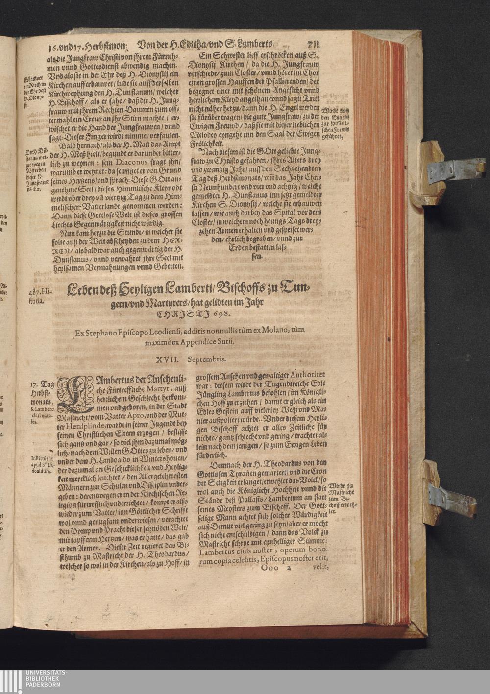 Vitæ Sanctorvm / Etwa von Francisco Haræo S. Theol. lice[n]tiato in latein beschrieben auch folgents augirt. Nachmals auß dem latein mit besonderm fleiß verteutscht, itzt aber widerumb vffs neuw corrigirt vnd vber die helfft verbessert Durch Valentinum Leuchtium SS. Theol. Doct. Proton. Apostolicum, Comitem palenti. & commiss. Cæsareum, Cantorem, & Concion. ad S. Barthol. Francoforti