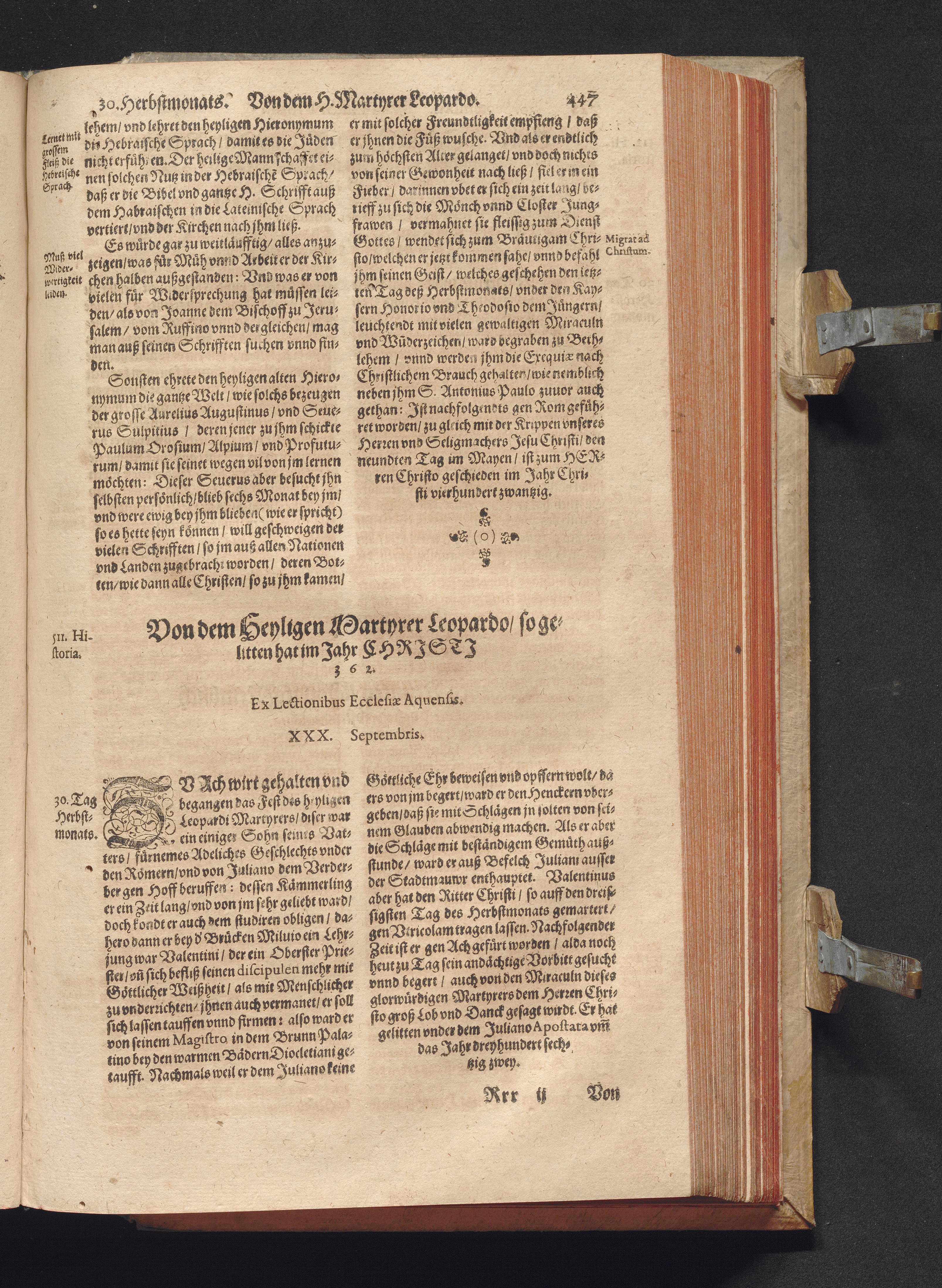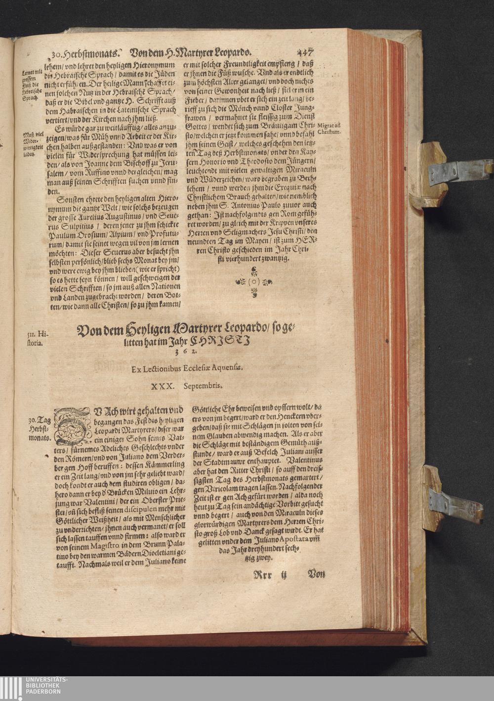 Vitæ Sanctorvm / Etwa von Francisco Haræo S. Theol. lice[n]tiato in latein beschrieben auch folgents augirt. Nachmals auß dem latein mit besonderm fleiß verteutscht, itzt aber widerumb vffs neuw corrigirt vnd vber die helfft verbessert Durch Valentinum Leuchtium SS. Theol. Doct. Proton. Apostolicum, Comitem palenti. & commiss. Cæsareum, Cantorem, & Concion. ad S. Barthol. Francoforti