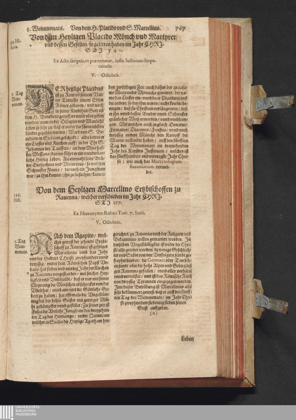 Vitæ Sanctorvm / Etwa von Francisco Haræo S. Theol. lice[n]tiato in latein beschrieben auch folgents augirt. Nachmals auß dem latein mit besonderm fleiß verteutscht, itzt aber widerumb vffs neuw corrigirt vnd vber die helfft verbessert Durch Valentinum Leuchtium SS. Theol. Doct. Proton. Apostolicum, Comitem palenti. & commiss. Cæsareum, Cantorem, & Concion. ad S. Barthol. Francoforti