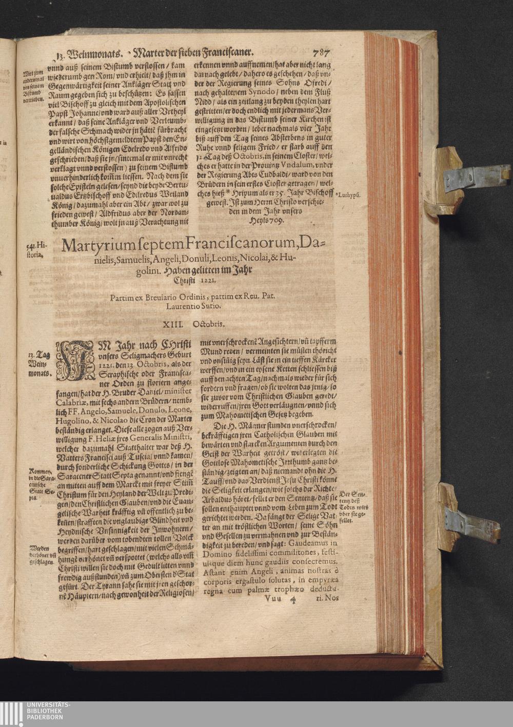 Vitæ Sanctorvm / Etwa von Francisco Haræo S. Theol. lice[n]tiato in latein beschrieben auch folgents augirt. Nachmals auß dem latein mit besonderm fleiß verteutscht, itzt aber widerumb vffs neuw corrigirt vnd vber die helfft verbessert Durch Valentinum Leuchtium SS. Theol. Doct. Proton. Apostolicum, Comitem palenti. & commiss. Cæsareum, Cantorem, & Concion. ad S. Barthol. Francoforti