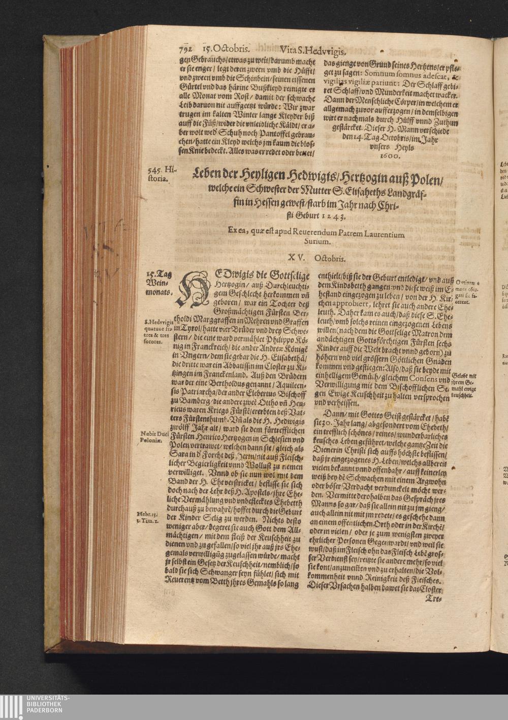 Vitæ Sanctorvm / Etwa von Francisco Haræo S. Theol. lice[n]tiato in latein beschrieben auch folgents augirt. Nachmals auß dem latein mit besonderm fleiß verteutscht, itzt aber widerumb vffs neuw corrigirt vnd vber die helfft verbessert Durch Valentinum Leuchtium SS. Theol. Doct. Proton. Apostolicum, Comitem palenti. & commiss. Cæsareum, Cantorem, & Concion. ad S. Barthol. Francoforti