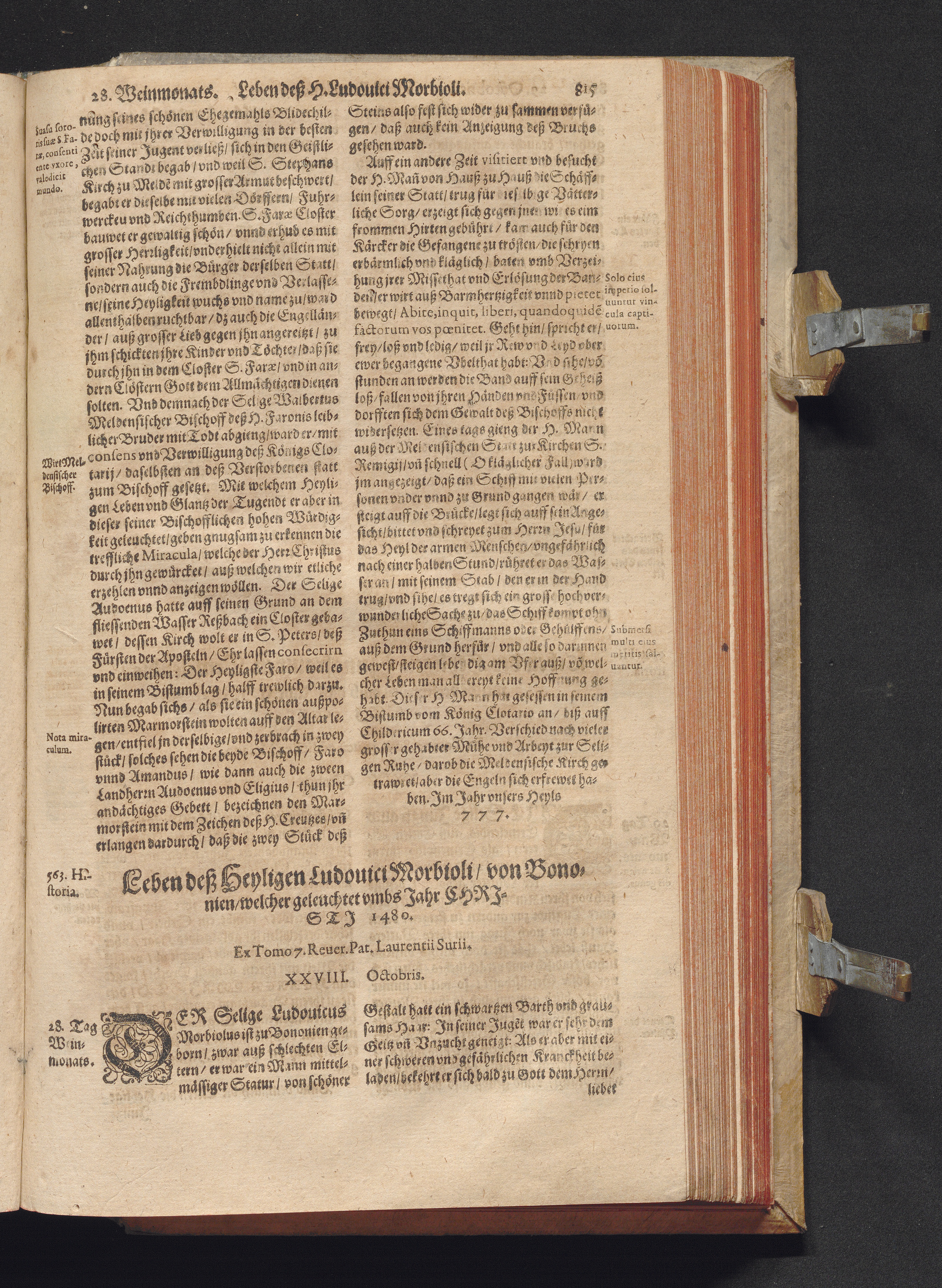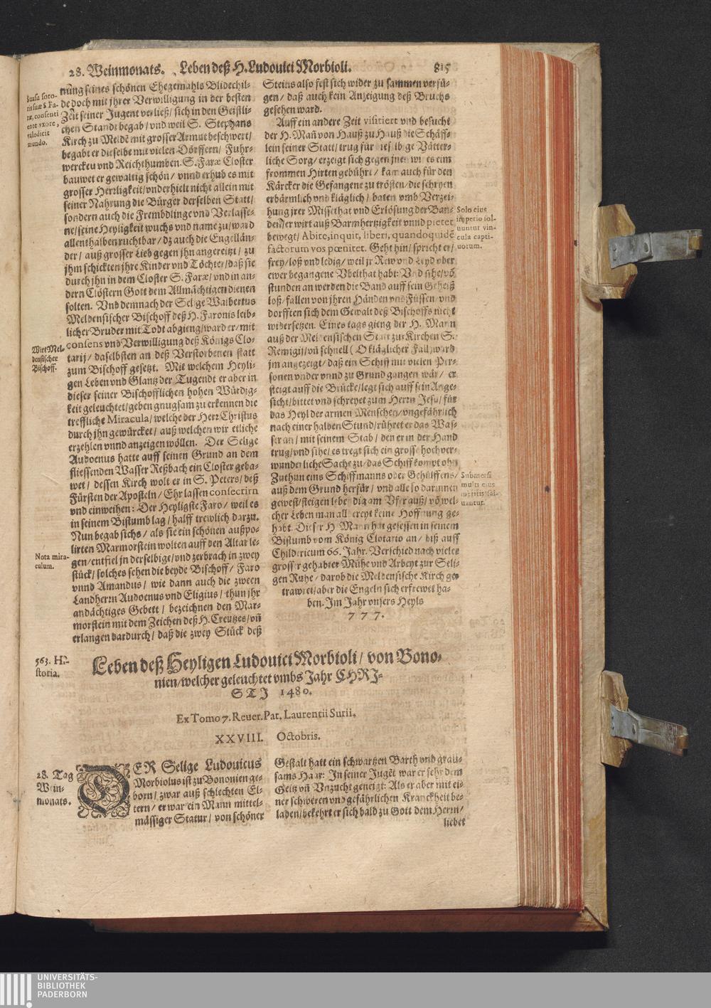 Vitæ Sanctorvm / Etwa von Francisco Haræo S. Theol. lice[n]tiato in latein beschrieben auch folgents augirt. Nachmals auß dem latein mit besonderm fleiß verteutscht, itzt aber widerumb vffs neuw corrigirt vnd vber die helfft verbessert Durch Valentinum Leuchtium SS. Theol. Doct. Proton. Apostolicum, Comitem palenti. & commiss. Cæsareum, Cantorem, & Concion. ad S. Barthol. Francoforti