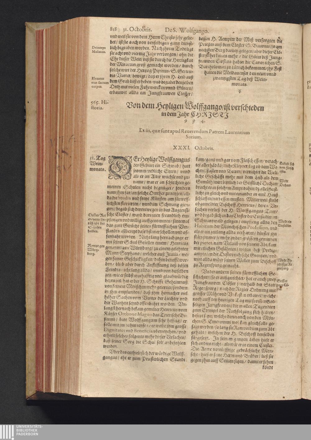Vitæ Sanctorvm / Etwa von Francisco Haræo S. Theol. lice[n]tiato in latein beschrieben auch folgents augirt. Nachmals auß dem latein mit besonderm fleiß verteutscht, itzt aber widerumb vffs neuw corrigirt vnd vber die helfft verbessert Durch Valentinum Leuchtium SS. Theol. Doct. Proton. Apostolicum, Comitem palenti. & commiss. Cæsareum, Cantorem, & Concion. ad S. Barthol. Francoforti