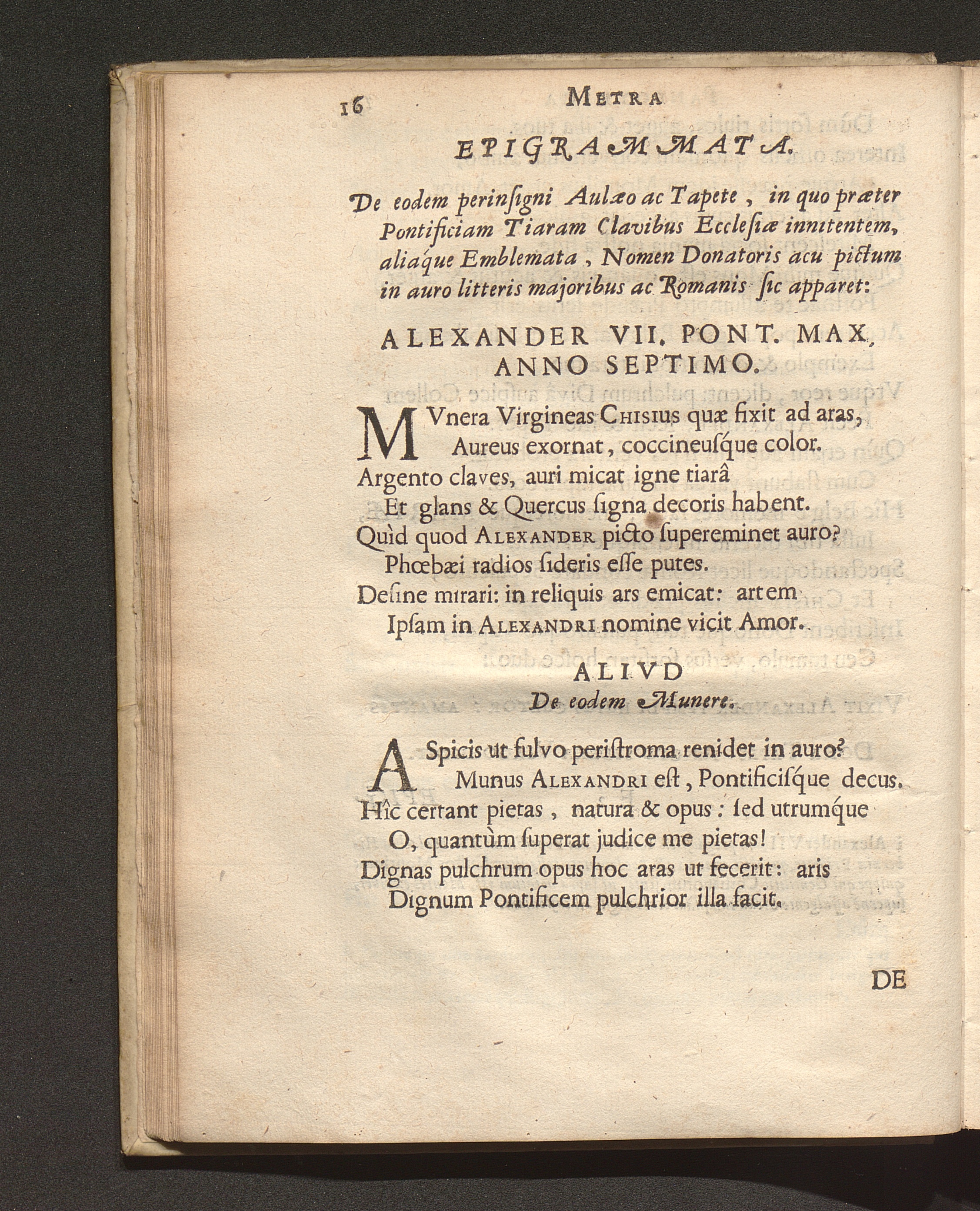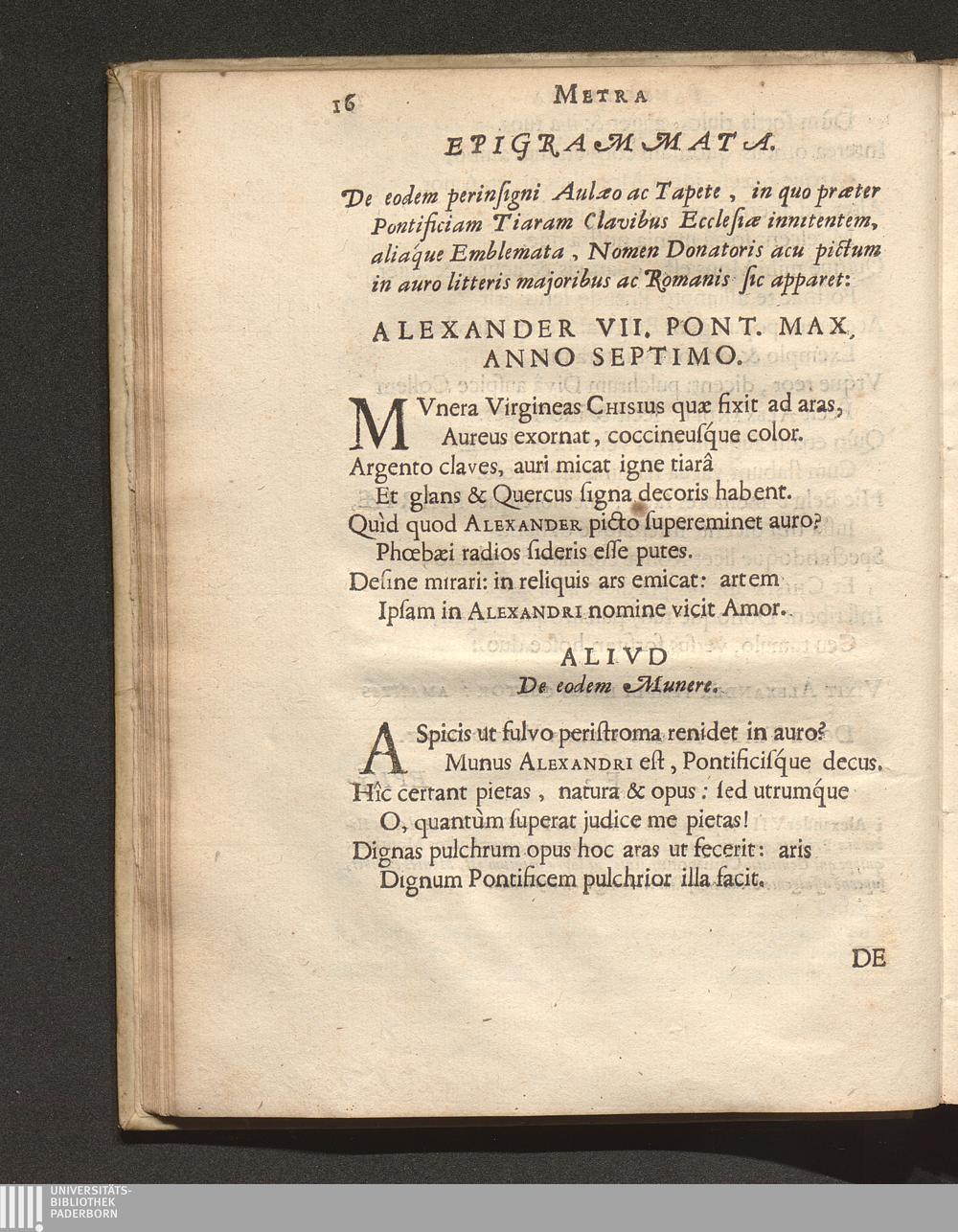 Oratio Panegyrica Habita In Sacra Aede B. Mariae Aspricollensis Ipso Festo Assumptionis ejusdem Die : Qvando Ad Illam Avrevs Tapes Missvs A Sanctissimo Domino Nostro Alexandro VII. Delatvs Fvit Ab Illvstrissimo Et Reverendiss. Domino Hieronymo De Vecchiis ... / [Franciscus Vanden Venne]