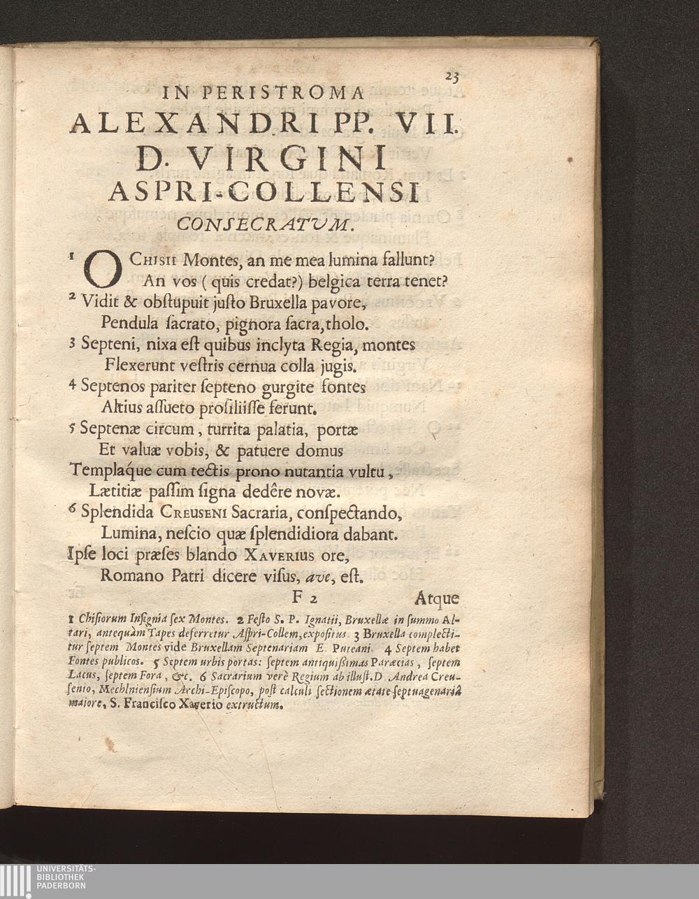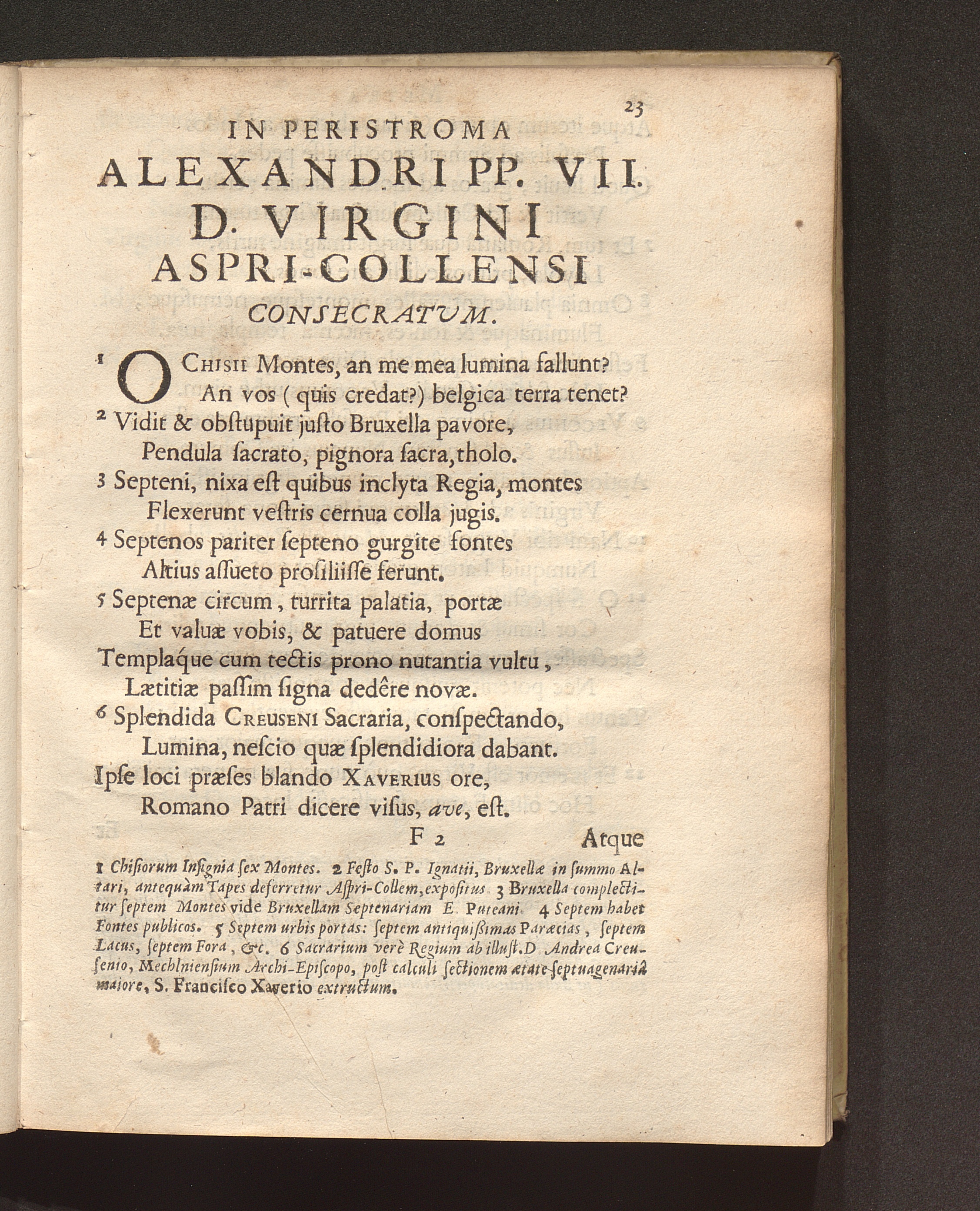 Oratio Panegyrica Habita In Sacra Aede B. Mariae Aspricollensis Ipso Festo Assumptionis ejusdem Die : Qvando Ad Illam Avrevs Tapes Missvs A Sanctissimo Domino Nostro Alexandro VII. Delatvs Fvit Ab Illvstrissimo Et Reverendiss. Domino Hieronymo De Vecchiis ... / [Franciscus Vanden Venne]