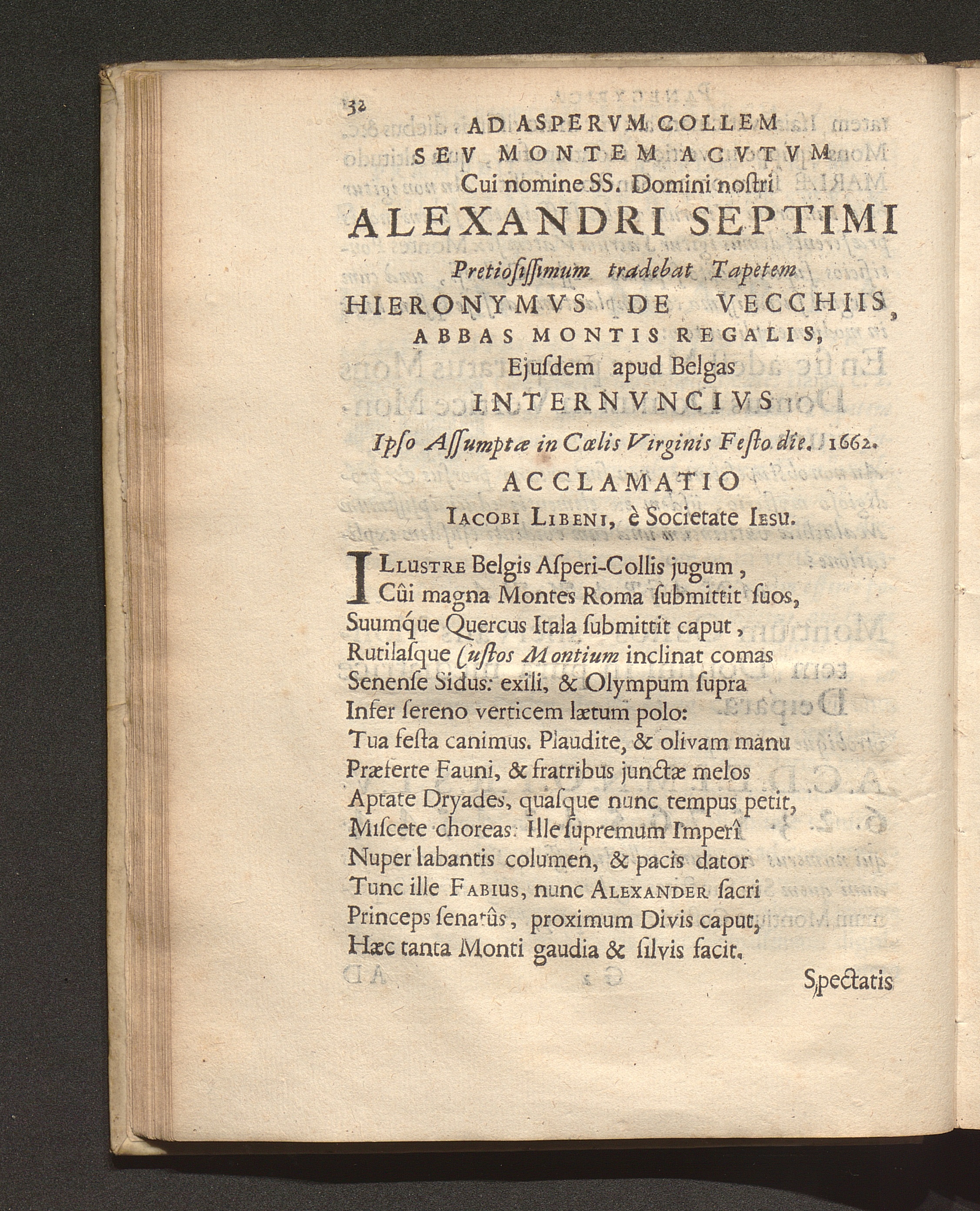 Oratio Panegyrica Habita In Sacra Aede B. Mariae Aspricollensis Ipso Festo Assumptionis ejusdem Die : Qvando Ad Illam Avrevs Tapes Missvs A Sanctissimo Domino Nostro Alexandro VII. Delatvs Fvit Ab Illvstrissimo Et Reverendiss. Domino Hieronymo De Vecchiis ... / [Franciscus Vanden Venne]