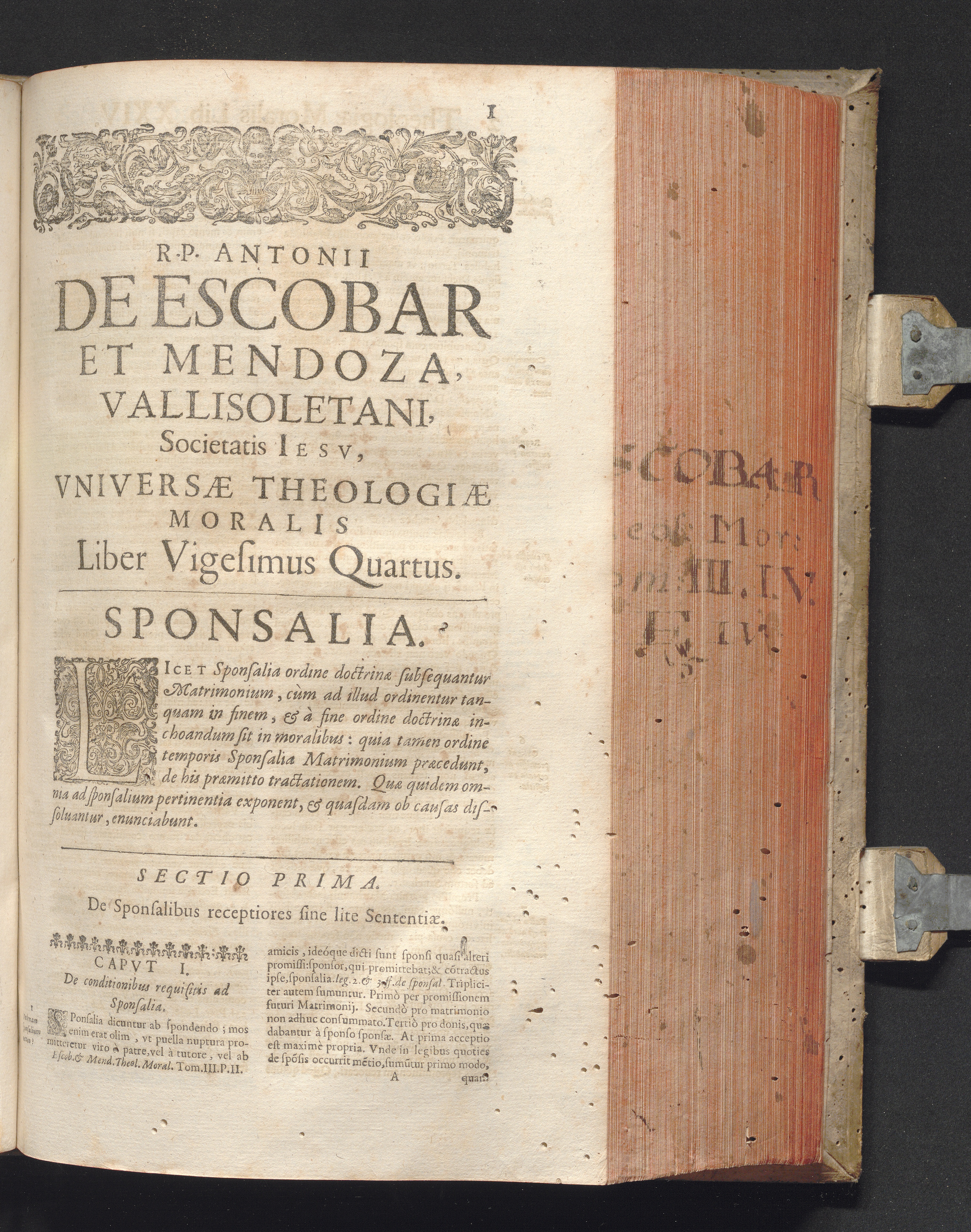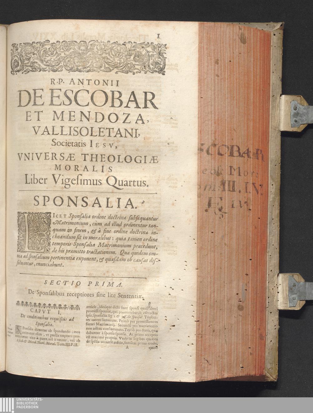 3,2: R. P. Antonii De Escobar Et Mendoza, Vallisoletani, Societatis Iesv Theologi, Vniversæ Theologiæ Moralis, Receptiores Absqve Lite Sententiæ nec-non Problematicae Disquisitiones ... Tomus ... : . Tomi Tertii Pars Altera / Matrimonii Sacramentum. Quatuor Libris Tractatus continet de Sponsalibus, de Matrimonij Essentia, Consensu Recto, Clandestino, Coacto, ac Conditionato, de Debito coniugali, ac Diuortio, de Impedimentis, & Dispensationibus