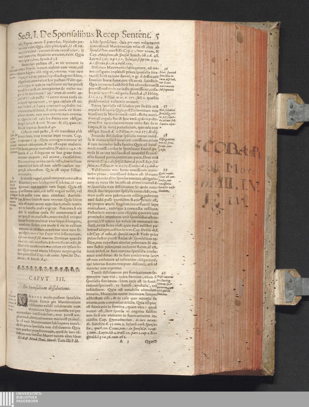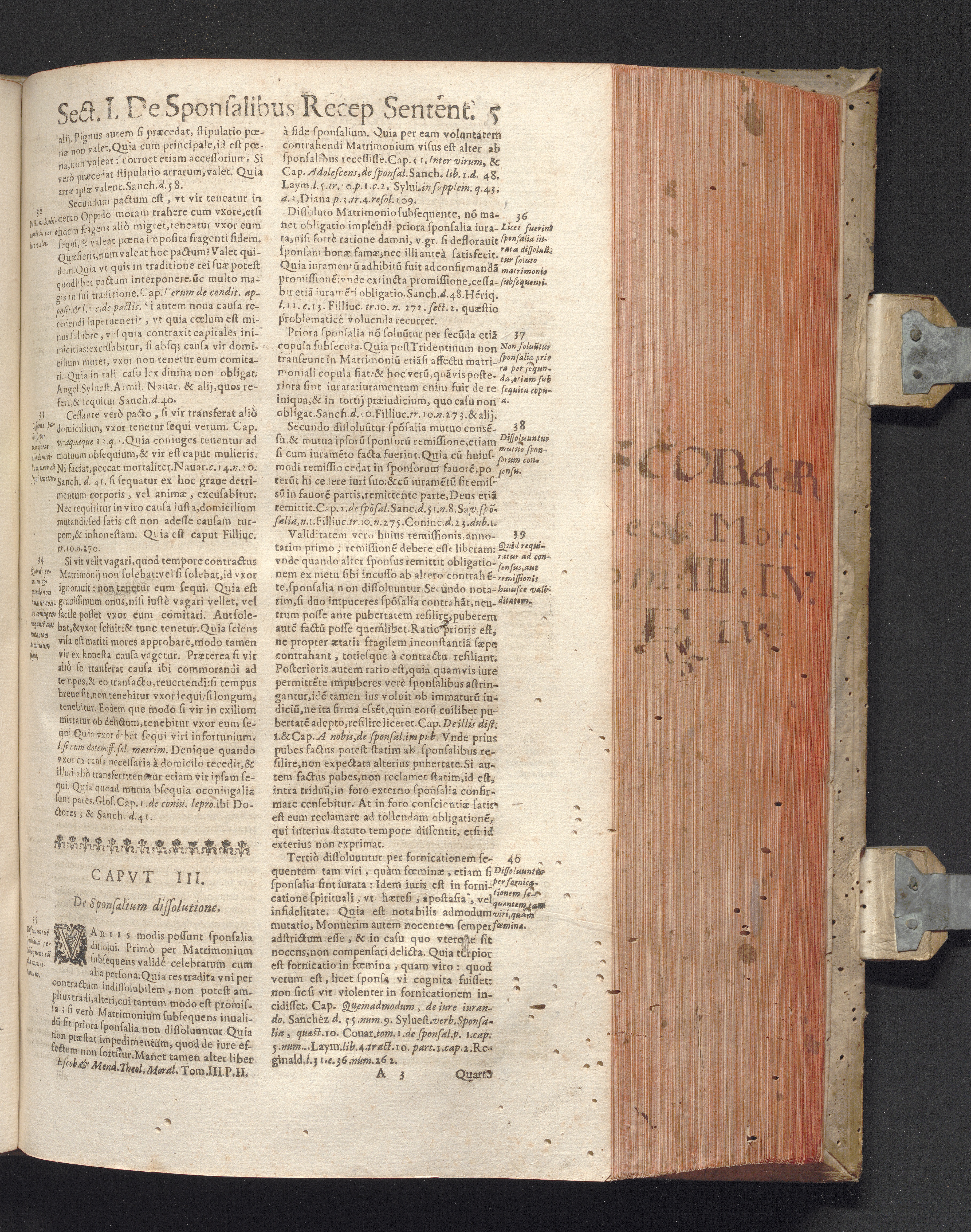 3,2: R. P. Antonii De Escobar Et Mendoza, Vallisoletani, Societatis Iesv Theologi, Vniversæ Theologiæ Moralis, Receptiores Absqve Lite Sententiæ nec-non Problematicae Disquisitiones ... Tomus ... : . Tomi Tertii Pars Altera / Matrimonii Sacramentum. Quatuor Libris Tractatus continet de Sponsalibus, de Matrimonij Essentia, Consensu Recto, Clandestino, Coacto, ac Conditionato, de Debito coniugali, ac Diuortio, de Impedimentis, & Dispensationibus