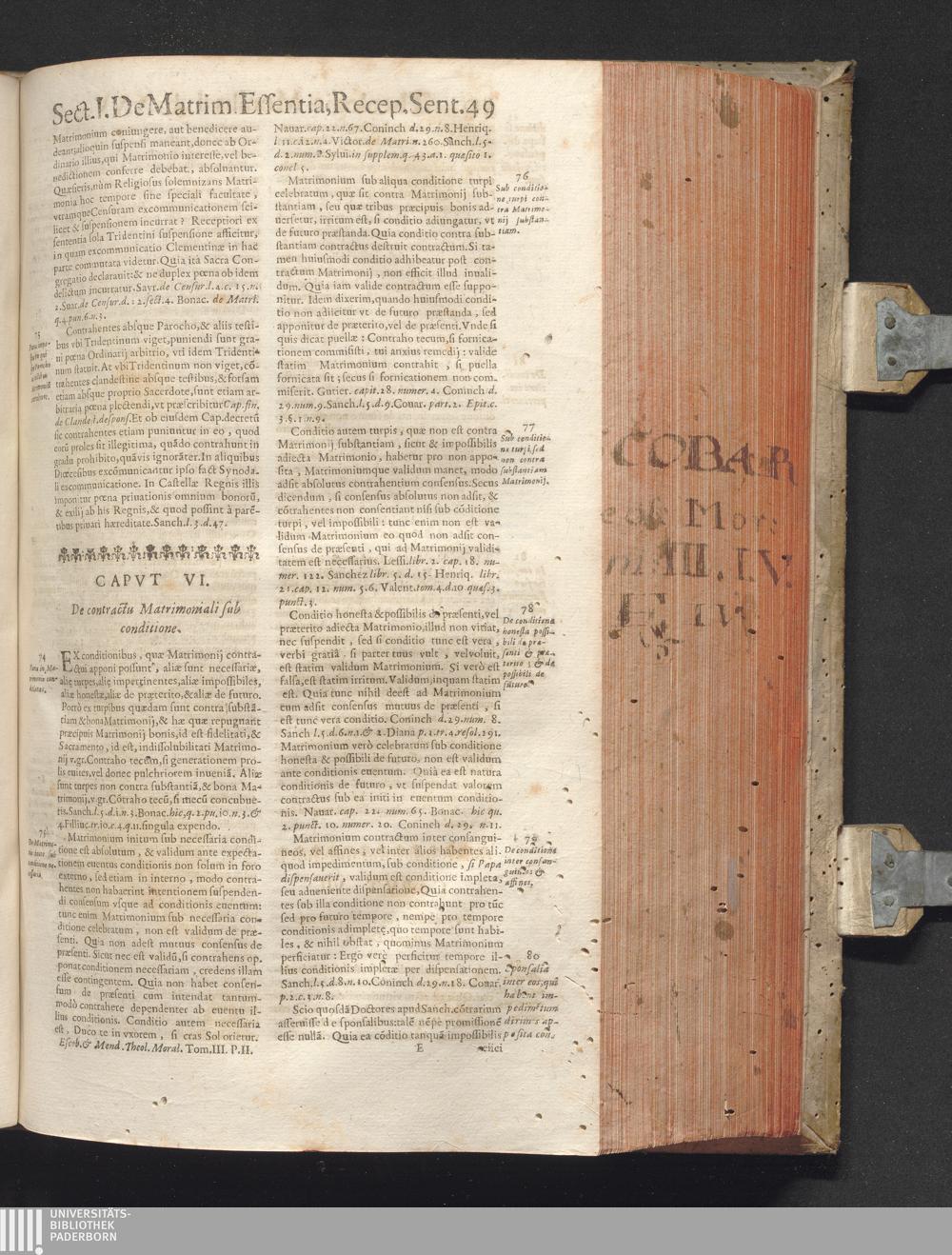 3,2: R. P. Antonii De Escobar Et Mendoza, Vallisoletani, Societatis Iesv Theologi, Vniversæ Theologiæ Moralis, Receptiores Absqve Lite Sententiæ nec-non Problematicae Disquisitiones ... Tomus ... : . Tomi Tertii Pars Altera / Matrimonii Sacramentum. Quatuor Libris Tractatus continet de Sponsalibus, de Matrimonij Essentia, Consensu Recto, Clandestino, Coacto, ac Conditionato, de Debito coniugali, ac Diuortio, de Impedimentis, & Dispensationibus